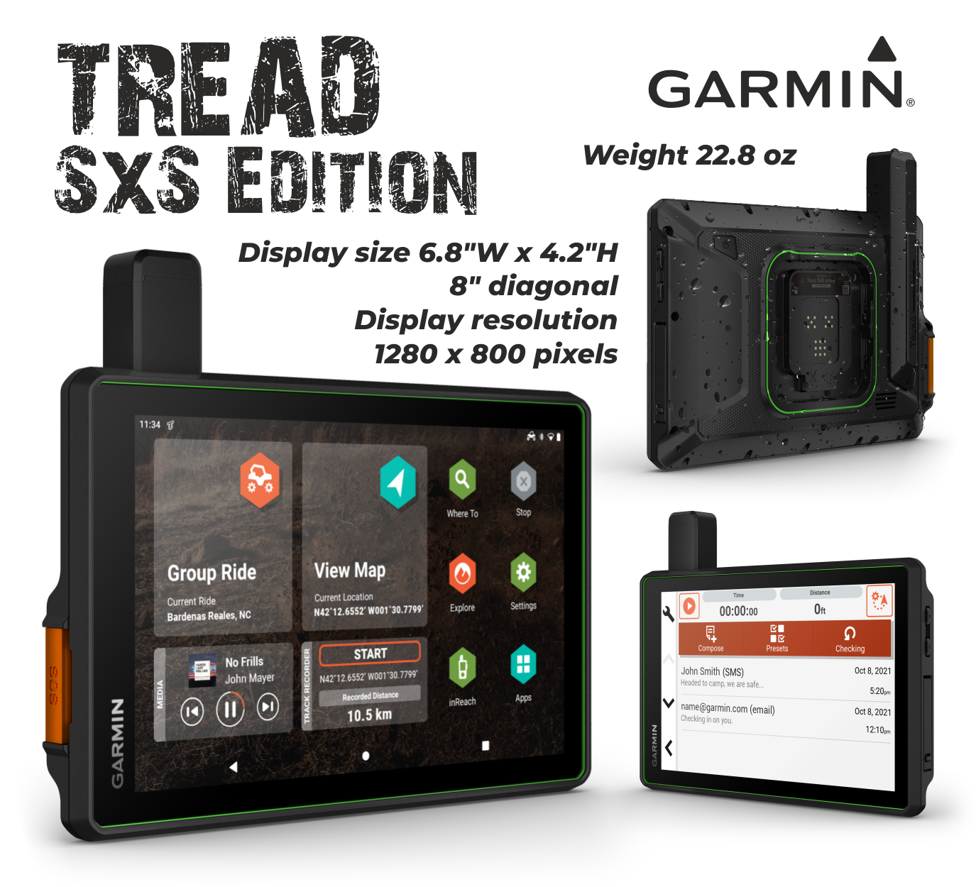 ALL OUTDOOR SPORTS Free Same Day Shipping! Reviews Contact Us 100% SATISFACTION We ship within 1 business day. FREE DOMESTIC SHIPPING Available on all domestic orders. 30 DAY RETURN POLICY Not Satisfied? Send it back. SECURE CHECKOUT GUARANTEED Your info is safe with us. Guaranteed. WE ARE AUTHORIZED DEALER DESCRIPTION Garmin Tread SxS, GPS Navigator, Ulltrabright Display, Preloaded Topography,Group Ride Radio, inReach Technology with Wearable4U Power Pack Bundle RIDING RADIO FOR GROUP GETAWAYS The included Group Ride Radio allows tracking for up to 20 Tread-equipped riders with no cellular coverage needed. Plus, the push-to-talk fist mic lets you easily stay in communication with your Group Ride friends. Pair Tread with your helmet or headset (not included) enabled with BLUETOOTH technology for hands-free communication. OFF-ROAD RUGGEDNESS Purpose-built for all-terrain use, this Tread device stands up to anything the elements can throw at it. It’s IP67-rated for water-resistance and built to U.S. military standard 810G for thermal and shock resistance. HIGH-VISIBILITY DISPLAY With its ultrabright 8” glove-friendly touchscreen, the navigator is designed for easy viewing in bright sunlight or pitch dark. It can be mounted in portrait or landscape mode. TRAIL NAVIGATION Enjoy turn-by-turn trail navigation for traversing unpaved roads and trails using adventure roads and trails map content comprised of OSM and USFS Motor Vehicle Use Maps. BUILT-IN INREACH TECHNOLOGY Built-in inReach technology offers global satellite communication, two-way text messaging, location sharing and interactive SOS. MAPS ON AND OFF-ROAD Tread features preloaded topographic maps with 3D terrain for North and Central America. It also includes detailed street maps of North America with Garmin Adventurous Routing options to take scenic and curvy routes. KNOW YOUR BOUNDARIES Access U.S. public land boundaries for national forests, Bureau of Land Management (BLM), wilderness areas and more. Also, see U.S. private land boundaries and landowner information for parcels greater than 4 acres. SATELLITE IMAGERY Enjoy vivid aerial views when you download high-resolution BirdsEye Satellite Imagery directly to your device via Wi-Fi connectivity, with no annual subscription required. ABC SENSORS When you’re headed to tough-terrain, the built-in sensors will come in handy — including an altimeter, barometer, compass and pitch/roll gauges. SECURE MOUNT The included locking magnet-assisted mount and tube mount secure your Tread navigator to your powersport vehicle for riding over rough terrain. EASILY SYNC YOUR DEVICES Use the Tread app to sync waypoints, tracks, routes and collections across all your devices. Easily import and share GPX files, too. EASY ROUTE PLANNER Use the Tread app to easily plan routes with the same maps, vehicle profiles and route preferences that you have on the Tread device. Garmin Tread SxS, GPS Navigator Specifications Display size 6.8"W x 4.2"H (10.8 cm x 17.2 mm); 8" diagonal (20.3 cm) Battery type rechargeable lithium-ion Display resolution 1280 x 800 pixels GPS Yes Physical dimensions 8.1"W x 6.7"H x 1.2"D (20.7 x 16.9 x 3.1 cm) Weight 22.8 oz (646 g) Display type multi-touch, glass, high brightness HD color TFT with white backlight Battery life Up to 6 hours at 50% backlight; Up to 1 hour at 100% backlight Water rating IPX7 Preloaded street maps Yes Navigate-a-track navigation Yes External memory storage yes (256 GB max microSD card) Ability to add maps Yes Dog tracking yes (when paired to compatible dog track system) Group Ride Mobile yes (with Garmin Tread app) Includes traffic yes (with Garmin Tread app) Wearable4U Power Pack Bundle Wearable4U Power Bank 2200 mAh Wearable4U Wall Charging Adapter Wearable4U Car Charging Adapter Keep your devices charged at all times with our Wearable4U Power Bank and the duo Wall & Car USB Charging Adapters.Compatible with all popular USB-powered devices including most smartphones, GPS and fitness trackers, smart watches, wireless speakers, bluetooth headphones, and more. Tread – SxS Edition | 8” Rugged Powersport Navigator with Group Ride Radio SHIPPING We aim to ship orders placed before 3pm Monday to Friday the same day, orders placed after this time will be posted next working day. Orders placed on weekends and bank holidays will be posted the next working day. All items are sent via USPS post. Postage is combined for multiple purchases. Please request an invoice for reduced postage. First class and priority mail post should arrive in 2 day, but this is not guaranteed. 2nd Day Shipping is applicable only for 48 continental States. Proof of postage is always obtained. However, an item is only considered "lost" after 15 working days, please contact us if your item does not arrive. If the wrong contact details are provided any losses incurred as a result will be the buyers responsibility. INTERNATIONAL BUYERS - PLEASE NOTE: Import duties, taxes, and charges are not included in the item price or shipping cost. These charges are the buyer's responsibility. Please check with your country's customs office to determine what these additional costs will be prior to bidding or buying. - Please be sure your eBay/Paypal shipping address is up to date. - If you need the item/s to be shipped to a different address. Please fill up a "gift address" in your eBay account preference first, and then complete the checkout process with this new shipping address. - International buyers please provide your shipping address in English. Wed really appreciate. RETURNS At our company we want you to be happy with your purchase, but if you are not, you can either return your purchase for a refund, or exchange*. A minimum 15 percent restocking applies. In order to return an item please contact us and we will provide you with a return address and returns code. Items should be returned within 30 days in the original conditions and in the original packaging, with all labels attached. 