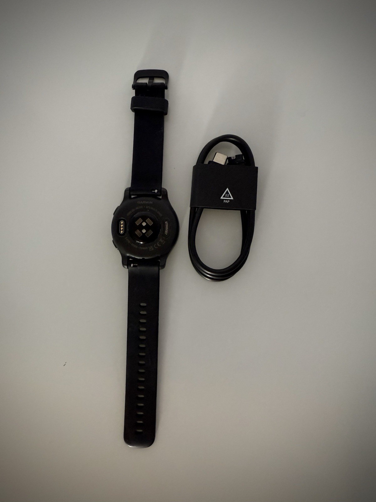 Includes new Garmin charger & watch The Garmin Venu 2S GPS Smartwatch in Slate bezel with Graphite Case and Silicone Band is a versatile and high-quality fitness tracker suitable for both indoor and outdoor activities. With a sleek design and a 360 x 360 display, this smartwatch offers a range of features such as heart rate monitoring, GPS tracking, and a variety of measurement tools for calculating speed, distance, time, and calories. It is compatible with both iOS and Android operating systems and is designed for unisex adults who are looking to track their fitness progress accurately and efficiently. Whether you are training in the gym or jogging outdoors, the Garmin Venu 2S is a reliable and user-friendly companion for your workout.