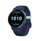Garmin 010-02862-12 vivoactive 5 Fitness-Tracking Smartwatch with Aluminum Bezel and Silicone Band (Navy Blue) Designed with bright, colorful 1.2-in. AMOLED display for a more complete picture of your health; rugged lens made of Corning(R) Gorilla(R) Glass 3 BodyBattery(TM) energy monitoring helps you understand when you're charged up or need to rest, with even more personalized insights based on sleep, naps, stress levels, workouts, and more (data presented is intended to be a close estimation of metrics tracked) Get a sleep score and personalized sleep coaching for how much sleep you need -- and get tips on how to improve plus key metrics such as HRV status to better understand your health (data presented is intended to be a close estimation of metrics tracked) Find new ways to keep your body moving with more than 30 built-in indoor and GPS sports apps, including walking, running, cycling, HIIT, swimming, golf, and more Wheelchair mode tracks pushes -- rather than steps -- and includes push and handcycle activities with preloaded workouts for strength, cardio, HIIT, Pilates and yoga, challenges specific to wheelchair users, and more (data presented is intended to be a close estimation of metrics tracked) Automatic nap detection and nap logging tracks your nap length during the day, providing personalized insights on how it affects your BodyBattery(TM) energy monitoring and more (data presented is intended to be a close estimation of metrics tracked) Know your body better with extensive health monitoring features, including wrist-based heart rate, morning report, fitness age, stress tracking, menstrual cycle and pregnancy tracking, meditation, and more (data presented is intended to be a close estimation of metrics tracked) Take on any fitness journey with advanced training features such as workout benefit -- which helps you understand how each workout affects your body -- and recovery time to know how long your body needs to recover and more Use preloaded workouts that include cardio, yoga, strength, HIIT and Pilates; create your own in the GarminConnect(TM) smartphone app or try GarminCoach free adaptive training plans to help you prepare for your next running challenge Download your favorite music to your watch, including playlists from your Spotify(R), Amazon(R) Music or Deezer(R) accounts, and connect with your wireless headphones for phone-free listening Leave your cash and cards at home; GarminPay(TM) contactless payments (with a supported country and payment network) let you pay for purchases on the go and breeze through select transit systems Safety and tracking features include incident detection (during select outdoor activities) and assistance, both of which can call or send a message with your live location to emergency contacts when paired with your smartphone; requires setup and your smartphone to be in an area with network coverage where data connectivity is available Sync with the GarminConnect(TM) smartphone app and get more details on your health and fitness data plus personalized insights and more Battery life of up to 11 days in smartwatch mode; includes charging cable and documentation Metallic Navy Bezel with Navy Case and Band