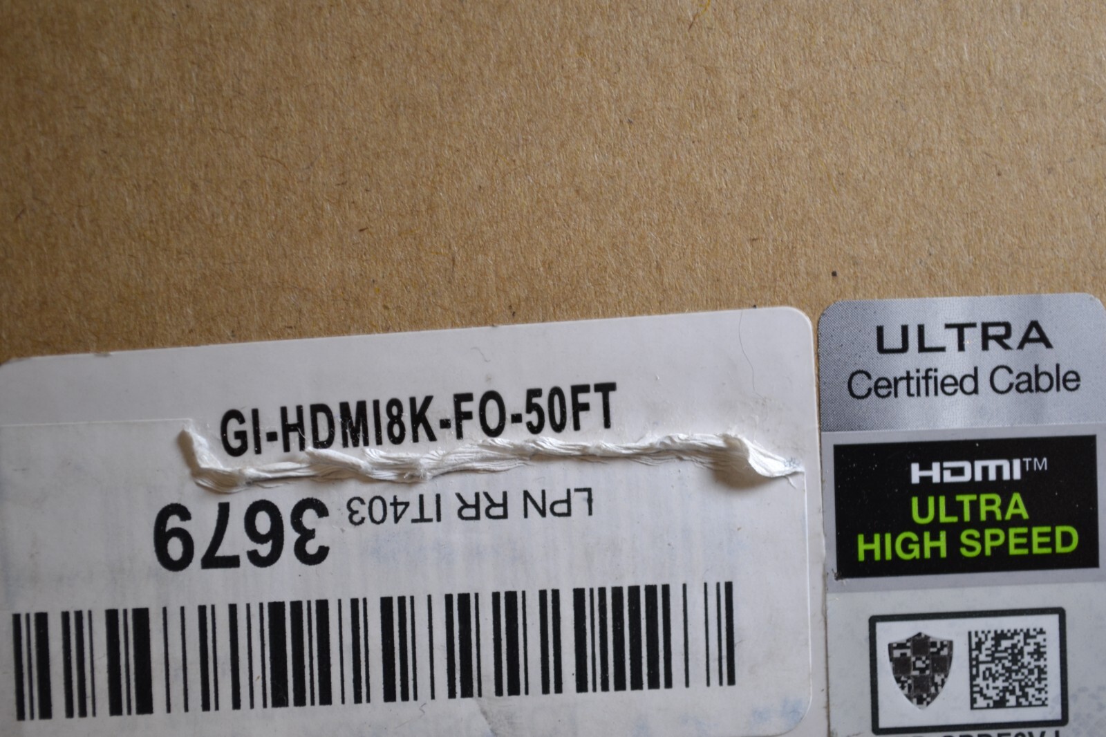 Features:Fiber CableType:CableConnector A:HDMIConnector B:HDMIMPN:GI-HDMI8K-FO-50ftgtin13:Does not applySeller Notes:“EXACT item pictured. Never used! Tested; works as it should.”UPC:Does not applyBrand:UnbrandedColor:BlackCable Length:50 ft