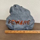 Halloween tombstone prop, a spooky addition to your Halloween decor. This eye-catching piece features a realistic rock-like texture with embedded 'BEWARE' lettering that lights up with an eerie glow. Designed to create a chilling ambiance, it also includes sound effects to enhance the scare factor. Perfect for indoor or covered outdoor use, this tombstone prop will add a touch of fright to your Halloween display. Type: Props Occasion: Halloween Character Family: Halloween Character: Tombstone, Grave Digger, Ghost, Scary Rock Color: Gray Material: Plastic Keywords: Halloween, tombstone, prop, decoration, light up, sound, beware, spooky, scary, Gemmy, Halloween decor, party, indoor, outdoor