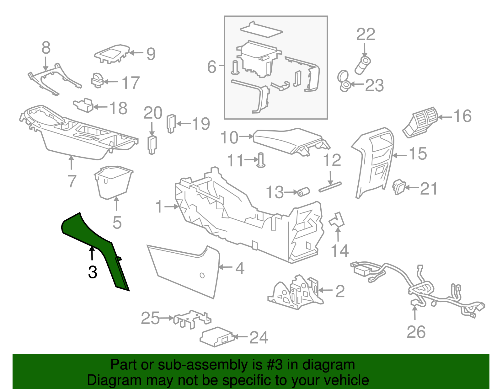 World Parts Direct Genuine GM Jet Black Driver Side Front Floor Console Extension Panel 22881157 Part can be found as # 3 in the diagram above Product Description Console & components. front black. Helps define the appearance of your vehicle's console This GM Genuine Part is designed, engineered, and tested to rigorous standards and is backed by General Motors Collision parts are designed to help promote proper and safe repair Specifications Brand GM Manufacturer Part Number 22881157 SKU 22881157 Product Genuine GM Jet Black Driver Side Front Floor Console Extension Panel 22881157 Replaces 22831644, 22831647 ONLY PART REFERENCE #3 ON THE DIAGRAM IS INCLUDED About Us WorldPartsDirect is a small, Texas based business located in the Dallas metroplex. There are about twenty of us that work tirelessly to get you the genuine, OEM parts you need at unbeatable prices. We pride ourselves in top quality customer service and our commitment to be the business we would want to shop with. We have one of the largest inventory networks in the country along with some of the most aggressive discounts. We love cars, and we love what we do! We hope you will love shopping with us , and we always welcome feedback on how we can make your shopping experience even better. Terms and Conditions Compatibility Guarantee (optional free service): Applies when you include your VIN during or before checkout. Simply click "Message to Seller" during checkout and include your VIN with any relevant details (ex: driver/ passenger side). Our fitment experts will confirm compatibility before shipping. If we determine that you purchased an incompatible part, we will correct your order if possible. If we cannot correct your order, we will notify you of the issue (ex: discontinued item) and give you the option to cancel. Part Authenticity and Warranty Guarantee: When you order from us, we guarantee that you will receive a genuine, OEM part. We do not stock anything aftermarket! Our parts are warrantied nationwide for 1 year at every Mopar (Chrysler/Dodge/Jeep/Ram) or General Motors (Chevrolet/Buick/GM/GMC) dealer in the country, depending on the brand of part you ordered. We are able to provide documentation that proves the validity of your purchase from our licensed dealership at anytime upon request. This documentation can be used to redeem this warranty if needed at the dealership of your choice and at no cost to you. Return Policy All of our products can be returned within 30 days. Please open a request for any of these reasons: Doesn't Fit Changed My Mind Found a Better Price Just Didn't Like it Ordered by Mistake The reason you pick has no impact on your refund amount, but it has a big impact on us as a seller. Choosing other reasons may delay the refund per an internal investigation and potential eBay appeal. If a part fails at anytime during the 1 year warranty period, any licensed new car dealership in the country that carries your brand of vehicle will replace the part for free. Simply request our dealer invoice for the part and provide it to your preferred dealer along with the defective part. Home • Newsletter Signup • Contact Us Copyright © 2025 World Parts Direct , All rights reserved. Solution by RevolutionParts, Inc. :: Design by OCDesignsOnline
