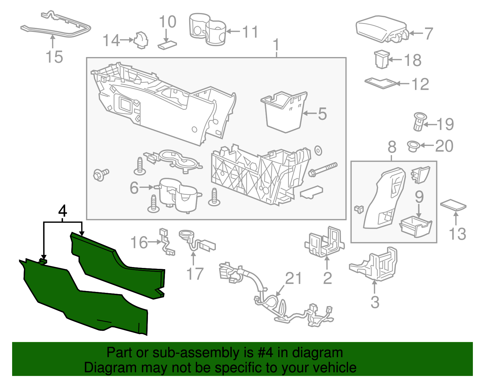 VRAY-GMC Genuine GM Jet Black Driver Side Front Floor Console Extension Panel 23320862 Part can be found as # 4 in the diagram above Product Description Console & components, black. Helps define the appearance of your vehicle's console This GM Genuine Part is designed, engineered, and tested to rigorous standards and is backed by General Motors Collision parts are designed to help promote proper and safe repair Specifications Brand GM Manufacturer Part Number 23320862 SKU 23320862 Product Genuine GM Jet Black Driver Side Front Floor Console Extension Panel 23320862 Replaces 22853576 ONLY PART REFERENCE #4 ON THE DIAGRAM IS INCLUDED WARNING : May cause cancer and reproductive harm. See www.P65Warnings.ca.gov for more info. Terms and Conditions Thank you for shopping with us. Please find our policies below. If you have any other questions, please don't hesitate to contact us. Shipping Terms In stock orders ship within 24 hours. Weekend orders will be processed the next business day. If a part is not in stock and must be ordered from the manufacturer, it usually takes 2-3 days to arrive to us and will be promptly shipped to you. Most of the orders are shipped complete within 2-3 business days. A few of the parts ordered from the manufacturer may take up to 5-6 business days to arrive and will shipped to you immediately. Depending upon location, ground shipments usually take 2-7 days. Your order may be shipped Overnight for an additional cost. Oversized shipments will be additional; you will be contacted prior to shipping for approval. We cannot guarantee transit times for ground and oversize orders. Shipping Carrier substitutions may be made at our determination in an attempt to reduce shipping cost to the customer. We do not ship internationally. In the unlikely event that a part has been placed on backorder or discontinued, we will do our best to try and find one for you as quickly as possible. We do not ship COD orders. Return Policy Contact us to arrange for any returns. A copy of the invoice will need to be included with the return. Parts must be resaleable and in the original packaging. We cannot take back used parts. We cannot take back installed or tried parts. Electrical parts are not returnable. We do reserve the right to refuse and return any parts we find have been installed, are used or do not meet the above criteria. Return request need to be within 30 days of receipt. Cancellation Policy An order or a portion of an order may be cancelled up until the time it is shipped and no longer in our possession. Home • Newsletter Signup • Contact Us Copyright © 2025 VRAY-GMC , All rights reserved. Solution by RevolutionParts, Inc. :: Design by OCDesignsOnline