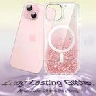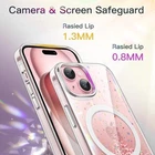 Glitter Case for iPhone 15 Plus 6.7-Inch Compatible with MagSafe, Clear Cute Bling Sparkle for Women and Girls, Shiny Shockproof Magnetic Sparkly Phone Cover (Pink) [Perfectly Fit] NOTE: Not for iPhone 15 / 15 Pro / 15 Pro Max. Designed for iPhone 15 Plus 6.7 inch for women and girls. The perfectly aligned cutouts allow full access to the camera, speaker, buttons and other ports,[Long Lasting Glitter] NOTE: The glitter cannot flow. The embedded eye-catching silver foil will never flake off and stay bling. The flat and comfortable back shiny design can show special twinkle effects from different angles, making your phone more attractive and trendy,[Super Magnetic Adsorption] Strongly attach to the charger magnetically. Once snap on, never sliding. Compatible with MagSafe accessories, such as wallet, ring holder and power bank,[Shock & Drop Resistant] Flexible TPU material and hard PC back cover keep your device shockproof. Effectively protect your phone from drops and bumps,[Added Protection] Raised edges protect the screen and camera lens from scratches and dirt. Unique dot design on the side prevents watermarks Product Description JETech Glitter Case for iPhone 15 Plus 6.7-Inch Compatible with MagSafe, Clear Cute Bling Sparkle for Women and Girls, Shiny Shockproof Magnetic Sparkly Phone Cover