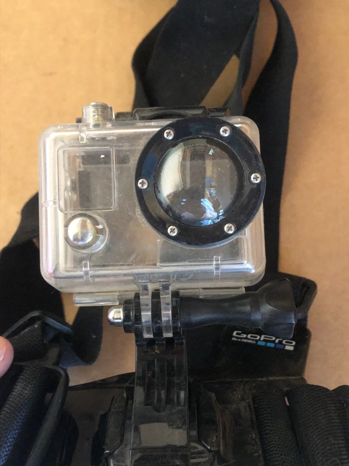 GOPRO CHEST MOUNT CASE. GOOD CONDITION. THIS IS AN OLDER MODEL
