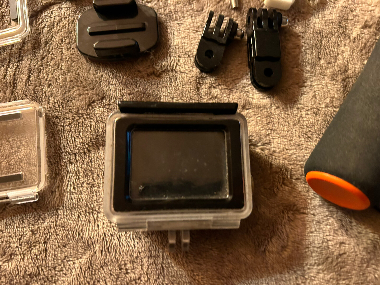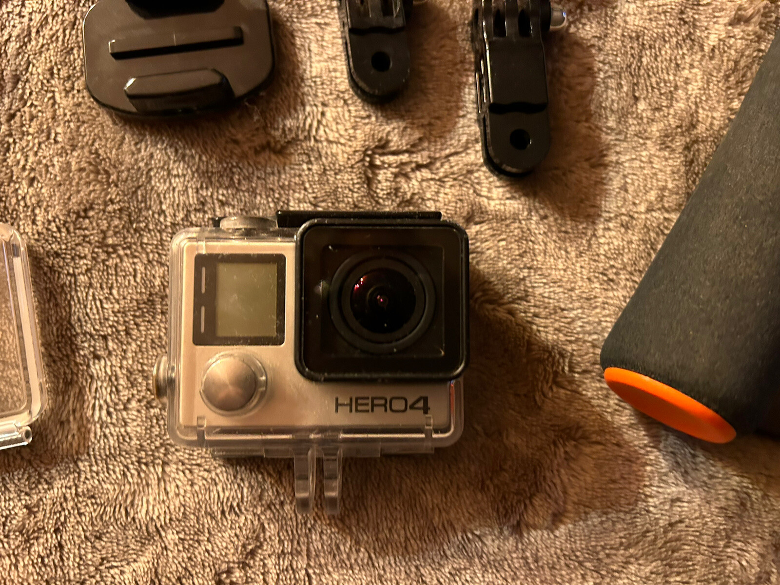 Capture stunning moments with the GoPro HERO4 Action Camera Silver Edition. This camera is perfect for capturing high definition videos and photos in a variety of settings, from outdoor adventures to indoor events. It comes with mounts and accessories that make it easy to attach to a helmet or other gear and start recording. With built-in Bluetooth, Wi-Fi, and an LCD touch screen, you can easily control the camera and transfer your photos and videos to your phone or computer. It's also waterproof and has a built-in microphone, making it perfect for capturing footage underwater or in other wet conditions. This camera uses a MicroSD card for storage, which is easy to remove and replace so you can keep recording all day. Comes with 2 handles. Charging $10 for shipping because of the long handle.