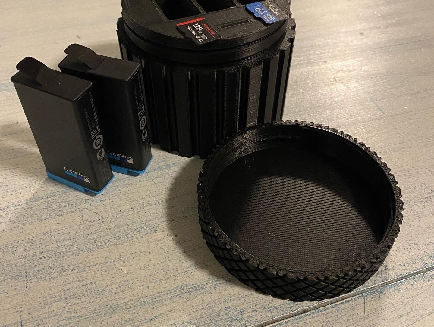 GoPro Max battery case. Screw on lid keeps three batteries secured and two micro sd cards. Comes in many different colors Red Blue Black Green Lime green Fluorescent green Teal Orange Yellow Fluorescent orange Brown Light blue Pink Silver Purple White Does not include micro sd cards or batteries. After purchase please message me with the color you want, if no color is messaged the color that will be sent will be black. This only fits GoPro Max batteries will NOT fit GoPro hero batteries! This item in NOT water proof it’s used for keeping batteries and sd cards safe while traveling.