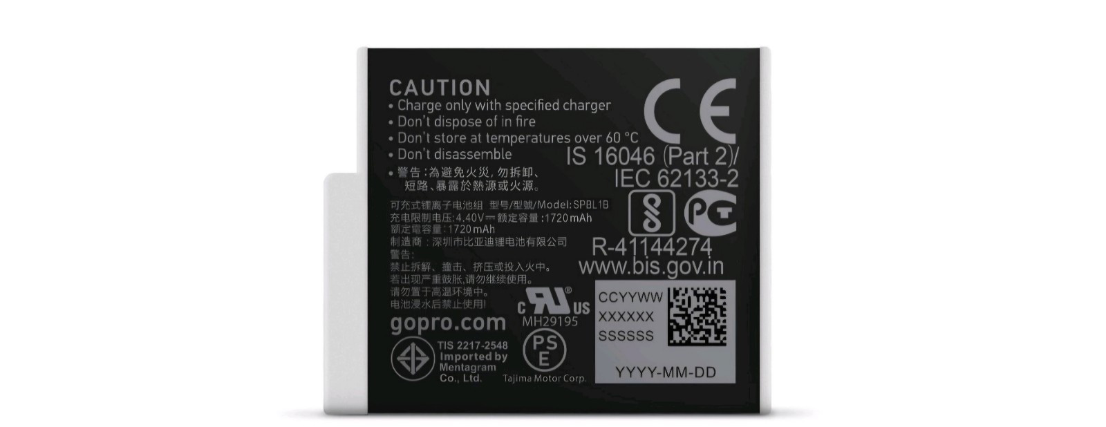 This is a GoPro Rechargeable Li-Ion Battery designed for HERO9/10/11/12 cameras. It has a capacity of 1720 mAh and is compatible with the GoPro HERO series. The battery uses lithium-ion technology, making it reliable for extended use while capturing photos and videos.
