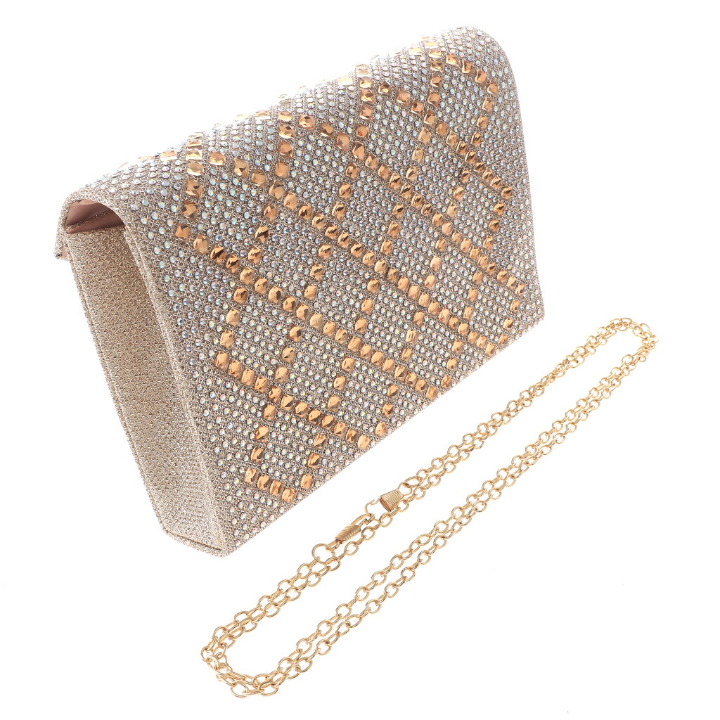Gold Tone Fashion Glitter Fabric Rhinestone Clutch Evening Bag / Approximate Size: 8" L x 5.25" H x 1.75" W / Long Chain included / Color: Gold & Brown Condition: Brand New SKU: TLX038-GLD Color: Brown Design: All orders will ship from USA via UPS or USPS. We expect all local orders will receive the items within 7 business days or less depend the location. Worry free international shipment delay or custom duty fee.