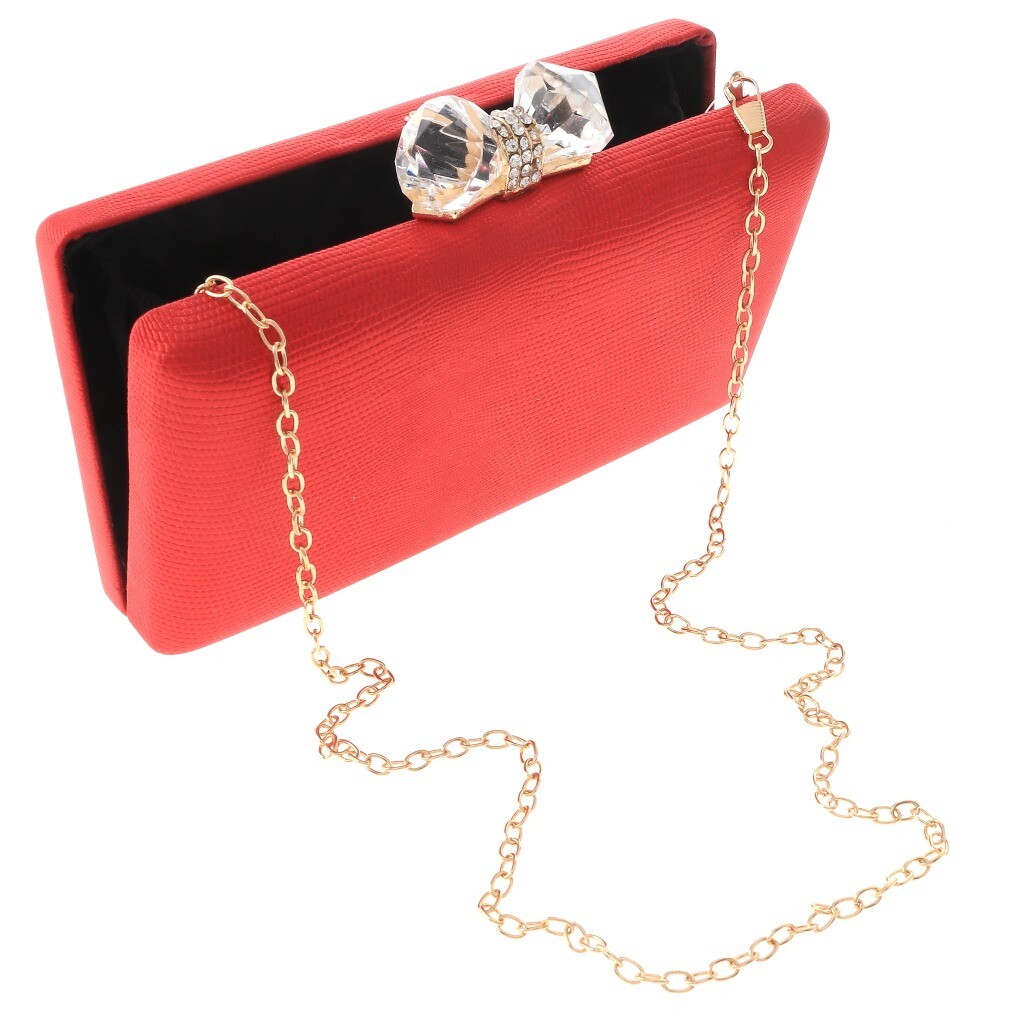 Gold Tone Metal Leatherette Evening Bag / Chain strap Included / Size: 7.75"L x 4.5"H x 1.75"W /Color: Gold & Red Condition: Brand New SKU: JXL007-RED Color: Red Design: All orders will ship from USA via UPS or USPS. We expect all local orders will receive the items within 7 business days or less depend the location. Worry free international shipment delay or custom duty fee.