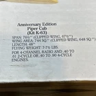 Goldberg Anniversary Cub Kit has been started. The elevator is framed up and some horizontal stab parts have been removed from the die cuts The wind screen is damaged (see pic) Everything else looks good Plans are in good shape Cowling and dummy cylinder in good shape Kit may be missing small pieces, but the major parts of the kit are included. Kit is probably from the late 1980s Shipping in Cont USA only