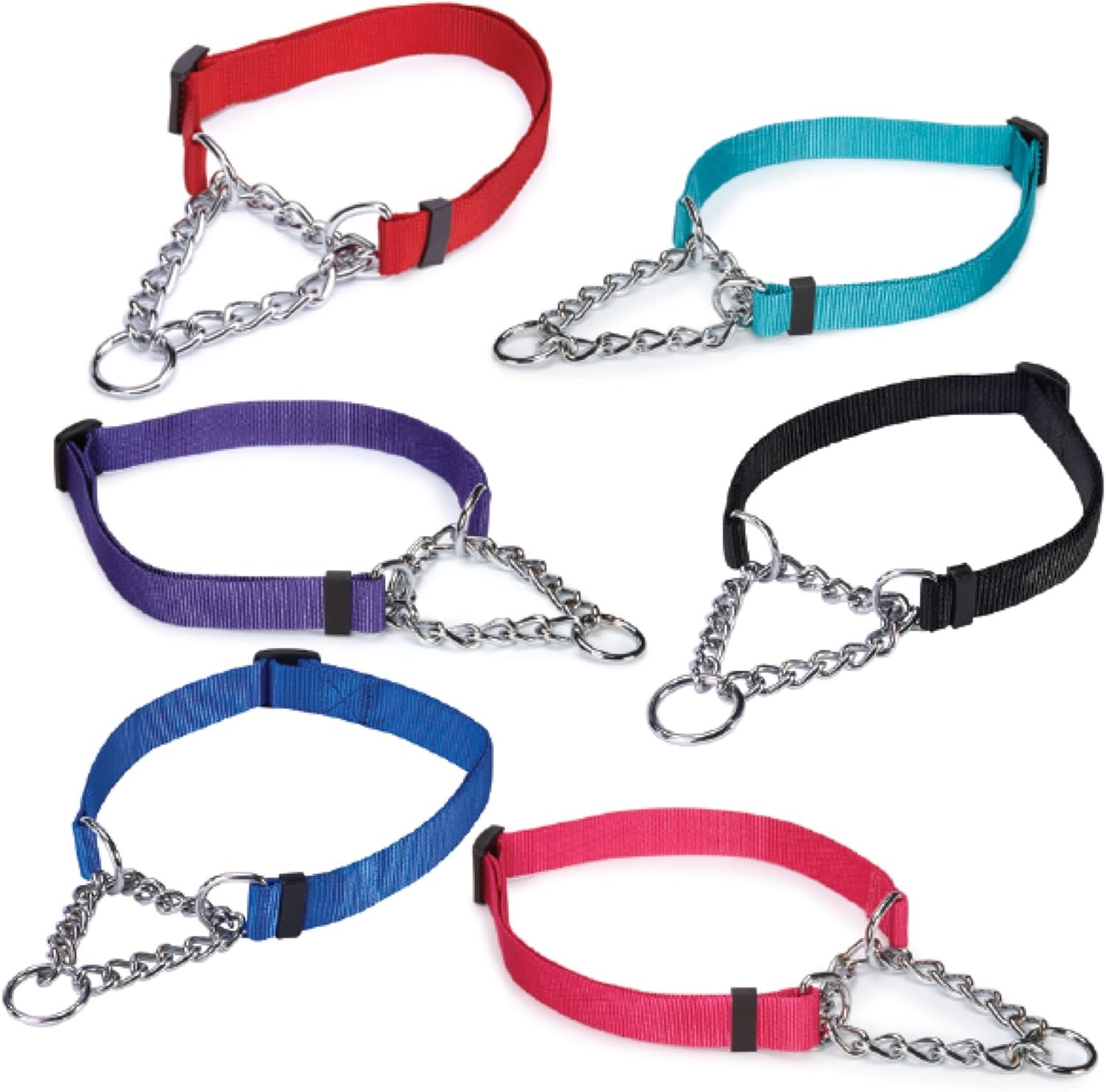 Guardian Gear Choke-Style Adjustable Martingale Dog Collar 22-34 Inch, Red Product Details Item Weight: 3.52 ounces Manufacturer: PetEdge Dealer Services* Country of Origin: China Item model number: TP330 22 83 Item Package Dimensions L x W x H: 4.37 x 4.17 x 1.69 inches Item Dimensions LxWxH: 7.5 x 1.5 x 1.3 inches Brand Name: Guardian Target Audience Keyword: dogs Color: Red Size: 22-34 Inch Material: Nylon Care Instructions: Hand wash with mild soap and air dry Number of Items: 1 Breed Recommendation: All Breed Sizes Included Components: Hangtag Is Discontinued By Manufacturer : No Product Dimensions : 7.5 x 1.5 x 1.3 inches; 3.53 ounces Item model number : TP330 22 83 Manufacturer : PetEdge Dealer Services* Country of Origin : China Pattern: Dog Brand: Guardian Closure Type: slip_on More Control – Provides the limited range of a standard choke collar for additional control but features the convenience of adjustable sizing for added comfort Perfect for Training – The collar size adjusts as pressure is applied to the leash, making this collar the ideal choice for puppies learning to walk on a leash Safe Design – Each martingale collar is equipped with a limited closure design which ensures that the collar will not ever fully close or injure pets A Wide Range of Sizes – Comes in three sizes ranging from 13 inches to 34 inches for a comfortable, safe fit on dogs of a wide variety of breeds Various Colors Available – Choose the style that suits your pup’s personality; Available in black, blue, light blue, pink, purple and red Featuring the convenience of adjustable sizing paired with the safety of a limited range, this martingale collar is a good choice for pet parents looking for a safe, gentle way to train on leash. It works by adjusting in size as you apply pressure to the leash, giving your pet the signal to slow down without choking. Unlike standard choke collars, this style features a limited closure design. Several sizes are available to suit your pup’s neck size.