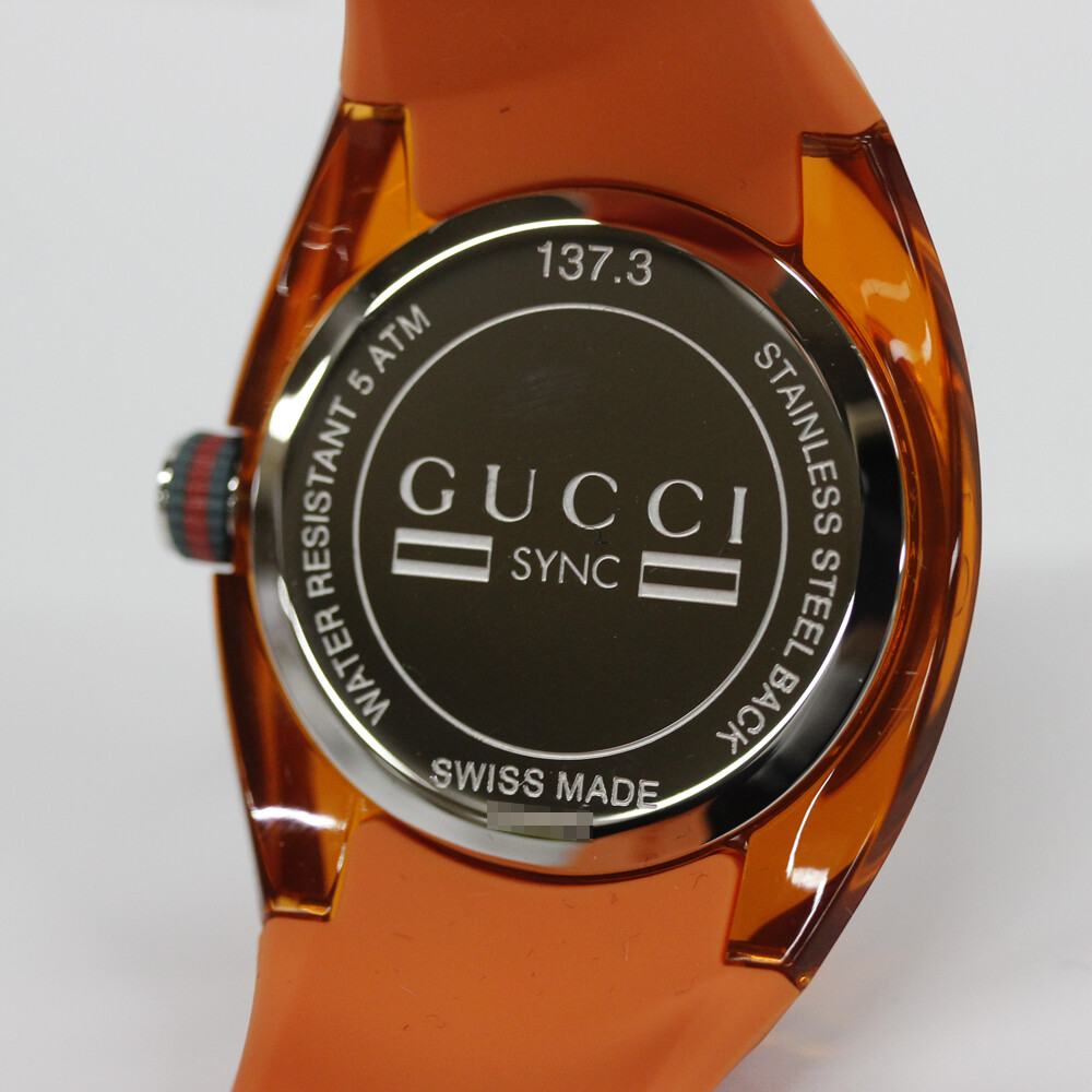 Absolutely love this Gucci watch! The orange silicone band makes such a fun pop of color, and the silver case looks way more expensive than what I paid. It arrived super fast and works perfectly - such a great find for a pre-owned piece!