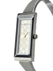 Gucci G-Frame Women's Silver Dial Stainless Steel Watch - YA127511 ($695 MSRP) New with Original Box and Tags! This watch is a Shelf Pull from one of the Major Department Stores. May find few micro scratches on the watch case/band, visible under a direct and strong light. The Gucci G-Frame Women's Silver Dial Stainless Steel Watch - YA127511 is a refined and elegant timepiece that exemplifies the luxury and sophistication of Gucci. The watch features a sleek stainless steel case paired with a stainless steel bangle bracelet, creating a cohesive and stylish look. The fixed stainless steel bezel frames a silver sun-brushed dial, which is minimalist and elegant, featuring only silver-tone hands and no hour markers. The Gucci name is prominently displayed at the 12 o'clock position, adding a subtle brand touch to the design. This analog watch is powered by a reliable quartz movement, ensuring precise and consistent timekeeping. The dial is protected by a scratch-resistant sapphire crystal, offering durability and maintaining a clear view of the time. The solid case back enhances the watch's robustness. The rectangular case measures 14 mm in width and 34 mm in length, giving the watch a distinctive and modern shape. The jewelry clasp on the bracelet provides a secure and seamless closure, making it easy to wear and remove. With a water resistance of up to 30 meters (100 feet), the Gucci G-Frame Women's Silver Dial Stainless Steel Watch - YA127511 is suitable for everyday wear, including light exposure to water such as hand washing or rain. This watch combines Gucci's iconic design with practicality, making it a perfect accessory for both casual and formal occasions. Features Stainless steel case with a stainless steel bangle bracelet. Fixed stainless steel bezel. Silver sun-brushed dial with silver-tone hands. No markers. The Gucci name appears at the 12 o'clock position. Dial Type: Analog. Quartz movement. Scratch resistant sapphire crystal. Solid case back. Case dimensions: 14 mm x 34 mm. Jewelry clasp. Water resistant at 30 meters/ 100 feet. Functions: hours, minutes Fast and Free Shipping You're already purchasing the item. Why pay additional for shipping, especially slow shipping? We get your order shipped out within 1-business day and delivered to your doorstep as quickly as possible. Competitive Pricing With our dynamic pricing model, our prices are always competitive. Our prices are some of the lowest that you will find on the internet. Rest assured that you're getting a good deal when purchasing with us. 30-day Money Back Guarantee We are committed to making sure that you leave this transaction satisfied. If you're unhappy with the product for any reason, you may return it back for your money-back or a replacement within 30 days. No questions asked!