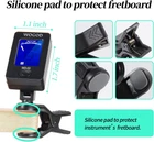 Neighborhood service Guitar Tuner Clip on Ukulele Violin Tuner - Chromatic Tuner for Bass Electric Acoustic Guitar Tuner ENJOY THE FEATURES WIDELY USE ➤ This guitar tuner is suitable for a variety of stringed instruments, perfectly designed for electric guitar, acoustic guitar, bass, ukulele, violin, mandolin and so on, and it can be selected from a variety of instrument tuning modes, including: C: chromatic, G: guitar, B: bass, V: violin and U: ukulele. QUICK & ACCURATE ➤ The WOGOD clip-on tuner is able to pick up the sound by vibration and respond in a very quick speed to ensure your instrument is accurately tuned in a flash. Just keep the guitar tuner permanently clipped to the head of your instrument and take 10 seconds from being in tune. EASY TO READ WITH 360°ROTATABLE SCREEN ➤ With a 360-degree swivel clip, the tuner is easy to adjust different angles for better reading and tuning. Super easy and intuitive to use. Suitable for professionals and guitar beginners, or anyone new to using this kind of tuner. COMPACT DESIGN FOR PORTABILITY ➤ Small size makes it easy to store in the pocket of your instrument's case, convenient to take it outsides for show. The guitar tuner can be used to tune all kinds of stringed instruments, suitable for outside performance, band practice and personal use. AUTO POWER OFF FUNCTION FOR DURABILITY ➤ WOGOD Tuner, with auto power off function, which is designed to save battery power to provide excellent durability, ensure the best user experience. If there is no continual operation, the tuner will auto power-off after 3 minuite. Product Description WOGOD GUITAR TUNER - Highly sensitive, Easy to read and operate, Supports multiple tunings, Auto-off Function About WOGOD: WOGOD is a professional company with 6 years experience of manufacturing guitar tuner and other musical instruments accessories. We continue to improve product performance, innovate products, always adhere to the concept of quality management, the quality concept fully implemented in the design, procurement, production, sales and after-sales, to bring our customer perfect musical experience. Durable Guitar Tuner The WOGOD guitar tuner with automatic shut-off function is easy to operate and designed with durability, which can save battery power effectively. If there is no continual operation after 3 minutes' power-on state, the clip on tuner will automatically power off to ensure the long-term availability and durability. 360 Degree for Easy View The guitar tuner ia able to rotate 360 degree for better viewing angle. Comes with batteries and ready to use. Highly accurate tuner with 5 tuning modes. With a 360-degree swivel clip, the tuner is easy to adjust different angles for better reading, which is great for beginners and professionals. Easy to Use, Tuning in Seconds! Super easy to operate with one button. Press the Button and hold 2 seconds to turn on(off) the tuner and press continuously to select tuning mode. The WOGOD highly sensitive guitar tuner is able to pick up the sound by vibration and respond in a very quick speed to ensure your instrument is accurately tuned in a flash. 1. High quality : We have many years of experience in manufacturing and selling guitar tuners, and insist on using high quality materials to ensure the premium quality and product’s long service life. 2. Lightweight & Portable : Our compact, lightweight aluminum guitar tuner is convenient to storage and carry. Great for guitarists, beginners and professionals on performances or band practice. Product Features: Designed for multiple stringed instruments, suitable for electric guitar, acoustic guitar, bass, ukulele, violin, mandolin and so on. The WOGOD clip-on tuner can be selected in different modes, including: C: chromatic, G: guitar, B: bass, V: violin and U: ukulele. Quick & accurate tuning. The highly sensitive guitar tuner picks up the sound by vibration and respond in a very quick speed to ensure a accurate tuning. Easy to carry. With compact and lightweight design, the guitar tuner enables you to take it ousides for show or practice. With a 360-degree swivel clip, the tuner is easy to adjust different angles for better reading, which is great for beginners and professionals. Super durable. The clip-on tuner is easy to operate and has automatic shut-off function to save battery power for long time use. How to tune? One Button Operation. Press and hold the button for 2 seconds to turn on (or off) the tuner and then select the tuning mode (C)chromatic, (G)guitar, (B)bass, (V)violin, or (U )ukulele by pressing the button. Clip the tuner onto the headstock, scroll or peg board of your instrument and play a single note on your instrument, the note name(and string number) will display in the screen. And you can tune your instrument in a few minutes. If intonation indicator points to the left :the note is flat If intonation indicator points to the right :the note is sharp If intonation indicator points to the middle: the note is in Tune Specifications: Tuning modes :Chromatic, Guitar, Bass, Violin, Ukulele Compatible with: Acoustic Guitar, Electric Guitar, Bass,Violin, Ukulele Pitch range:440Hz Detection accuracy: ±5 cent Weight:40g A PERFECT GIFT FOR GUITARISTS OR STRINGED INSTRUMENT PLAYERS WOGOD guitar tuner enables guitarists to tune their instruments in a few minutes, suitable for a majority of musical instruments, would be a great Gift Idea at Christmas, Holidays, Birthday, Halloween, Thanksgiving, New Year, housewarming. A meaningful and practical Gift for your kid, nephew, good friends who possess a acoustic guitar, ukulele and other stringed musical instruments. The one who recieve this present must be touched and surprised because he/she could feel your appreciation for his/her love of music. Item model number WD-01 Musical Style world-music Product Dimensions 2.2 x 1.5 x 0.85 inches Country of Origin China Item Weight 0.634 ounces Batteries 1 CR2032 batteries required. Color Name Black Ba