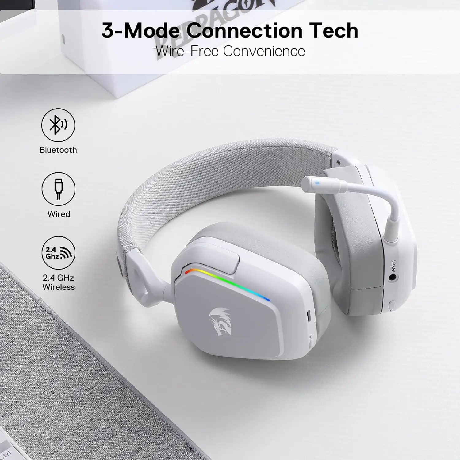 About this item Immersive 7.1 Surround Sound: Elevate your gaming experience with our gaming headphones. Its 40mm audio drivers crisp highs and thundering lows, allowing you to immerse yourself in the game fully. Wireless Freedom Unleashed:Experience Gaming Freedom with Redragon's RGB 3-Mode wireless gaming headset. Easy to switch from USB-C wired, BT 3.0/5.0 to 2.4Ghz wireless modes. Cut the Cord, Move with Ease, and Elevate Your Gaming Experience to New Heights. Noise-Canceling Microphone: Our gaming headset is equipped with an omnidirectional microphone that picks up your voice clearly and suppresses back and side noise, ensuring smooth communication with your teammates. No more misunderstandings or muffled conversations. Tune it to Perfection: H868 Headset provides 3 EQ modes (Classic, Game, Music) to give you a sense of presence in different scenes, bringing you immersive game sound effects or a vivid concert listening experience with one click. Multiplatform Compatibility: Our headphones with mic are compatible with multiple platforms, including PC, PS, Xbox, Switch, and more devices with 3.5mm connections, allowing you to enjoy your games wherever you are without any compatibility issues. Plug, play, and dominate! Reliable RGB Headset: The sturdy construction of Redragon wireless headphones ensures long-lasting durability, making it the perfect choice for intense gaming sessions. Take your gaming vibe to the next level with the dynamic RGB lighting. Feel The Comfort The soft headset paddings are covered with cozy PU Leather, enables your ear to breathe and keep them dry and cool. No need to worry, even after hours of wear you feel nothing but comfort. Convenient In-line Control Switch between three EQ modes effortlessly for different scenes, whether gaming, music or movie. Individual EQ mode button makes adjusting audio settings a breeze without losing focus.