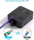 HANYCONY Power Strip Surge Protector, 5 Ft Exetnsion Cord with Multiple Black Product Details Product Dimensions: 4.5 x 3.68 x 1.5 inches Item Weight: 1.03 pounds Manufacturer: HANYCONY Country of Origin: China Brand: HANYCONY Color: Black Total Power Outlets: 8 Voltage: 125 Volts Special Feature: 2.2 in Wide Space & 8 Oulets and 4 USB Slots, Wall Mountable & Right Angled Flat Plug, UL Approved 5Ft Extension Cord, 900J Surge Protection, 15A Overload Protection Switch & 1875W Power 2.2 in Wide Space & 8 Oulets and 4 USB Slots, Wall Mountable & Right Angled Flat Plug, UL Approved 5Ft Extension Cord, 900J Surge Protection, 15A Overload Protection Switch & 1875W Power2.2 in Wide Space & 8 Oulets and 4 USB Slots, Wall Mountable & Right Angled Flat Plug, UL Approved 5Ft Extension Cord, 900J Surge Protection, 15A Overload Protection Switch & 1875W Power See more 【8 Outlets Power Strip with 4 USB】 - The 3 side power strip with 8 AC outlets(1875w/15a) and 4 usb charging ports( Total 5V/3.1A) can power up to 12 devices simultaneously. With built in Smart IC technology, the usb port can auto detect and deliver appropriate current to your devices, each port up to 5V/2.4A max, compatible with most USB devices 【2.2 IN Wide Spaced Outlets】 - 2.2 IN space are separated widely enough to fit big plugs without blocking each other, large than standard 1.5 in socket or other 1.75 in socket, Whether as a desk power strip or a nightstand USB charging station, the multiple outlets can saves more space, suitable for the home, office, and college dorm room 【15A Overload Protection Switch & 900J Surge Protection】 - The surge protector with overload protection protects your electrical appliances from lighting, surges or spikes. The minimum energy-absorbing capacity of 900 Joules. 15A Overload switch with integrated circuit breaker for overload protection of all outlets, allow current power up to 1875W/15A, higher than other 1250W/10A, is more safe. (The "Surge Protected” indicator light on to show your devices are protected) 【UL Approved Extension Cord with Wall Mount & Flat Plug】 - The 5ft power cord is very thick and has better current carrying capacity; The right angle flat plug fits easily in tight spaces and prevents bottom plug blocking; the two mounting holes on back allows this power strip to be securely installed in various applications 【Super Safety & After Sale Service】 - ETL Certified. This power strip has overload protection, short-circuit protection, over current protection, over-voltage protection and overheating protection. It will automatically cut power to protect connected devices when voltage surge is overwhelming