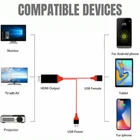 NOTE: This item has 2 colors in stock at the warehouse, a random color will be sent to you(black or red), if you mind, please don't specify. NOTE: 2020 Newly Updated HDMI Cable, it can support iPhone, iPad, and Android phones to TV/Projectors/Monitors. Purchase this and you'll receive a 3 in 1 "For iPhone to HDMI", "Micro USB to HDMI" or "Type c to HDMI" Cable. It's compatible with all phone models, ie: For iPhone or Micro USB or USB Type C ports. Online education, watch movies, gaming, and viewing photos directly from your devices. 1080P HD Videos and Images are Supported. P lug and Play - Compared with other similar cables, this MHL cable has been designed with ease-of-use in mind. No additional driver/software required. For iPhones/iPads, it's plug and play. With three ends connected, even without wifi, just click "trust" when prompted and you'll instantly project onto the big screen. Wide C ompatibility- Compatible with system IOS 8.0 and above, Android 5.0 and above. Support for iPhone Xs/XR/X/8/8 Plus/7 Plus/7/6s/6/5/ 5s/SE/5c iPad Mini/ iPad Pro /iPad Air iPod and Samsung Galaxy S8 S8+ S9 S7 S4/S3 NOTE2/3/4/5/7/8/9 Google Pixel, Moto, LG, Sony, and other devices with for iPhone, micro USB, and type c port. Please note, Not Compatible with some paid Apps' live stream which has "HDCP" video copyright protection, like Netflix, iTunes movies, Amazon video, HULU, and Honda motor. Installation Step 1: Connect it: Insert the USB port into the 5V/1A adapter, or 5V/2A USB interface on the TV / Monitor or Projector. Insert the HDMI out port of the cable into the HDMI Port of TV / Monitor or Projector. Insert the Original power cable of IOS devices/ Android devices into the USB female port of the cable. Step 2: Trust for Different Devices For iOS Devices Connect the phone and the for iPhone cable with the USB cable, just click "Trust", wait 10 seconds to synchronize the phone screen with the TV. For Android phones: Please open your cell phone and navigate to "Developer Options", then choose "USB debugging", then click "OK", trust the devices. If there is no "Developer Options" on your phone, please click 6 times continuously in "Build number" of the "Software info" under settings, then "Development Options" will open automatically. Specifications: Type: MHL to HDMI Cable Color: Red Material: PVC+ Metal Power Supply: 5V 1A/5V 2A Cable Length: 3Ft/1M Power Supply: USB Type A Male Display Output: HDMI Male Input: USB Female Applicable Models: for iPhone/iPad/Android phone, etc Compatible Systems: for Android 5.0 and later, for iOS 8 and later What’s in the box: 1 X HDMI Cable Phone To TV Adapter 1 X User Manual Powered by SoldEazy On Dec 2, 2022 at 01:51:33 PST, seller added the following information: