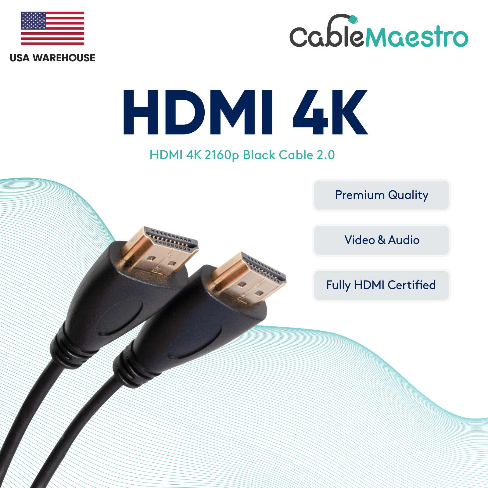 eBay HDMI 4K 2.0 Cable ITEM SPECIFICS Audio: eARC Max refresh rate: 144hz Max Resolution : 4K 2160p Connector construction: 24K Gold Plated. Color: Black. Compatibility : Blu-ray, DVD Player, PS5, Xbox Series X, Xbox ONE, PS4, PS3, XBOX 360, HDTV, LED/LCD. Length: 1.5 ft / 3 ft / 6 ft / 10 ft /12 ft / 15 ft / 20 ft / 25 ft / 30 ft / 35 ft / 40 ft / 50 ft. Fully HDMI Certified. Fully supports HDMI Ethernet channel and HDMI 3D features. Enhance your multimedia setup with our high-performance HDMI Cable, engineered for seamless connectivity and reliable signal transfers across HDMI-compatible devices. Supporting resolutions up to 4K at 60Hz, Ethernet, 3D, HDR, and Audio Return Channel (ARC), it ensures a secure connection for Blu-ray players, gaming consoles (e.g., PS5, Xbox), laptops, Fire TV, Apple TV, and more to HDTVs, monitors, or A/V receivers. Immerse yourself in Dolby True HD and DTS-HD Master Audio Robust build with gold-plated connectors for durability Thin, flexible design for easy installation in any environment Length options from 1.5 to 50 feet cater to diverse setup needs Trust in our rigorously tested HDMI Cable for superior audio-visual performance, ideal for home theaters, gaming rigs, or professional AV systems. SHIPPING Free Shipping to continental U.S.A Delivery within 2-5 business days Working Hours: Monday through Friday 9:00am - 5:30pm Tracking numbers will be sent to the email address that is associated with your PayPal account. All orders placed before 11:00am PST (2:00pm EST) time will be processed and shipped within the same business day. Copyright © 2024 CableMaestro. All rights reserved.