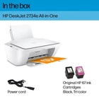 New - Sealed The HP DeskJet 2734e has the essential features you need to print basic color documents like recipes and forms. Print, copy and scan with ease, print from your phone and get easy setup. Includes the optional HP+ Smart Printing System that keeps itself up to date and ready to print from virtually anywhere at any time—at no additional cost. Includes free HP+ smart features Activate HP+ free to get advanced features for mobile printing, security, automatic updates and more. HP+ only works with an HP account, internet connection and Original HP Ink for the life of the printer. Best for basic printing Print basic color documents like recipes, forms and travel documents Key features Print, copy and scan in color, mobile fax, plus mobile and wireless printing Easy setup Get started fast on any device with the HP Smart app that guides you step by step HP Smart app Print, scan and copy from your phone—whenever, wherever.8 Get additional advanced features with HP+. Worry-free wireless Get better range and more reliable connections using dual-band Wi-Fi® with self-reset Dynamic security This printer is intended to work only with cartridges with original HP chips or circuitry and will block cartridges using non-HP chips or circuitry. Periodic firmware updates will maintain the effectiveness of these measures. ISO Speed: Black: Up to 7.5 ppm; Color: Up to 5.5 ppm Print Resolution: Black (best): Up to 1200X 1200 rendered dpi (when Printing from a computer); Color (best): Up to 4800 x 1200 optimized dpi color (when printing from a computer on selected HP photo papers and 1200 input dpi) Scan Resolution: Hardware: Up to 1200 x 1200 dpi; Optical: Up to 1200 dpi Copy Resolution: Black (text & graphics): Up to 300 x 300 dpi; Color (text & graphics): Up to 300 x 300 dpi Standard Connectivity: 1 Wireless 802.11a/b/g/n with Bluetooth 4.2; 1 Hi-Speed USB 2.0 Mobile Printing Capability: Apple AirPrint; Chrome OS; HP Smart app; Mopria-certified Duty cycle: Monthly (letter): Up to 1,000 pages Display: ICON LCD Display Paper Handling: 60-sheet input tray; 25-sheet output tray What's Included HP DeskJet 2734e All-in-One Printer HP 67 Setup Black Cartridge HP 67 Setup Tri-Color Cartridge Setup guide Power Cord