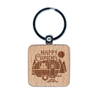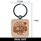 Happy Camper Trailer Camping Engraved Wood Square Keychain Tag Charm