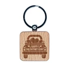Happy Valentine's Day Truck Engraved Wood Square Keychain Tag Charm