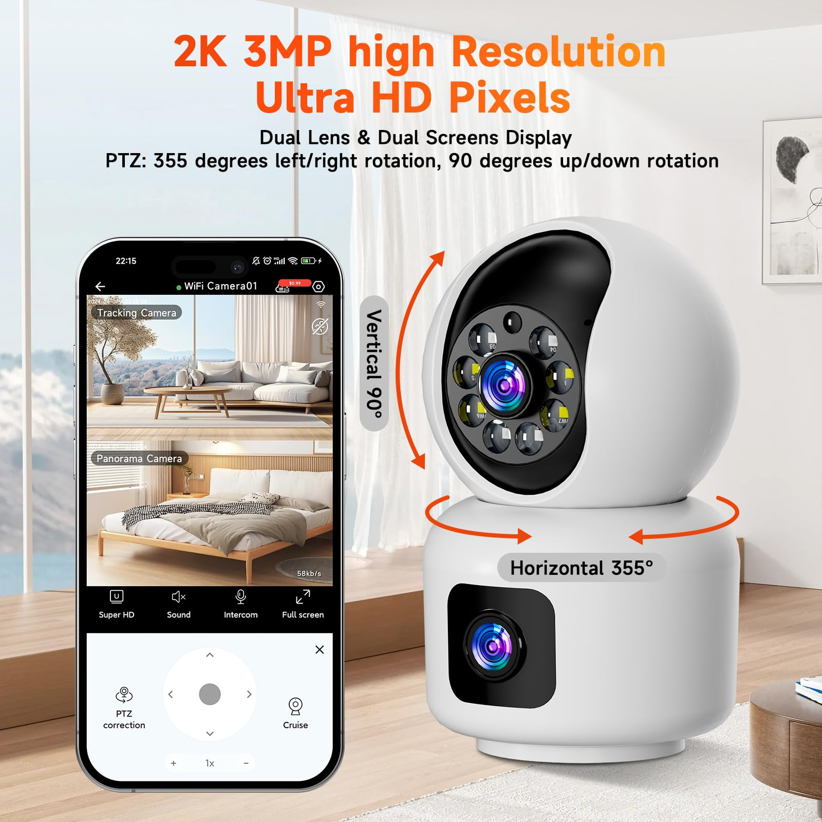 Hawkray 360° Dual Lens Smart Security Camera, 2K HD Camera, 2.4GHz with WiFi,...