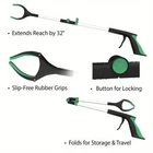 Product Description - Reaching Aid for Elderly - It is also a reaching aid tool for elderly to extend high or low. - Perfect for Daily Clean - It is helpful for daily yard clean, river floating trash. - Ergonomic Grip - Makes the handle easy and comfortable to hold and squeeze. - Rubber-tipped Grippers - Provides a secure hold and prevents damage when picking-up fragile items. Features: 32" Extra long and Aluminum Material --- Reaches items low and high, no need to bend down or climb a stool or ladder; Light weight but strong, can use for a long time, lightweight aluminum pole features rubber-tipped grippers to prevent damage Claw design - The grabber claw is coated with premium rubber to provide maximum grip strength, allowing you to lift items of all shapes and sizes with ease Handle and trigger - Padded, anti-slip handle and contoured trigger matches the natural shape of your hand for comfortable, pain-free use. Especially important if using for extended periods of time. This option allows the grabber to be used both vertically and horizontally for ultimate versatility Suitable for lots situation - For elder to pickup items in the yard, great for outdoor trash picker, help disabled to reach items, arm extension for kids and adults What you get: 1x Grabber