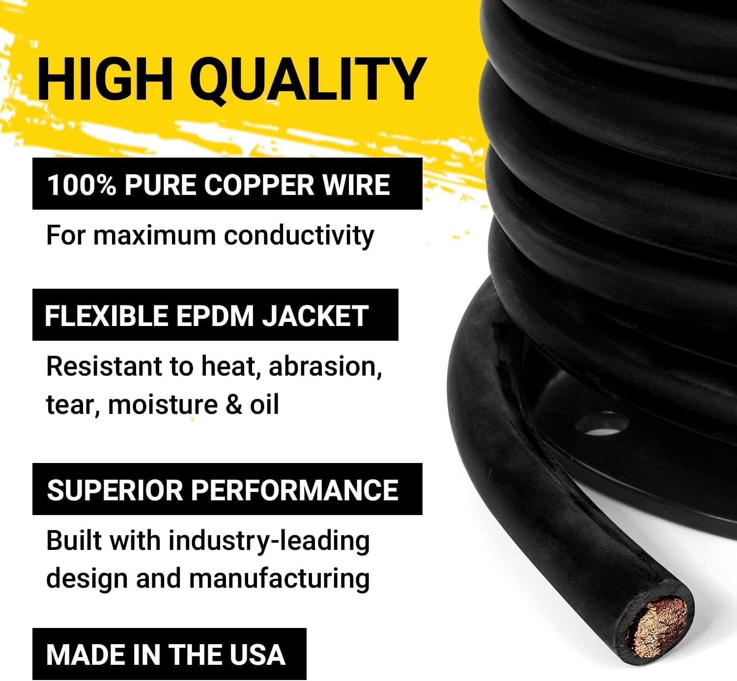 Store New Arrivals Add to Favorite View Feedback Contact Welding Lead & Car Battery Cable Copper Wire - DIY Bulk Car Battery Cable, Pro American Made Automotive Grade Battery Cable - 600 Volt, 1/0 AWG, 15 Foot, Black Description Item model number WELD1/0AWG15FTBLACK Part Number WELD1/0AWG15FTBLACK Batteries Required? No Number of Cable Strands 1026 No of wires 1 Item Package Quantity 1 Color 15 FT BLACK Material Copper Country of Origin USA Item Weight 6.63 pounds Batteries Included? No Voltage 600 Volts Usage Welding Installation Method Arc-welding Is Discontinued By Manufacturer No Package Dimensions 10.51 x 10.39 x 1.97 inches Size 0 (1/0) AWG High Quality: Same amazing, premium quality cable that we use for our renowned Spartan cables, extra flexible and made from 1026 stands of pure copper, now available in bulk so that you can make your own cables! Heavy Duty: Rated for up to 600 volts and ready for work in the toughest conditions; Withstanding temperatures from -58°F to +221°F, these cables are truly prepared for whatever you throw at them Premium Casing: Our cables feature an ultra-flexible EPDM jacket that is resistant to heat, abrasion, tear, moisture, and oil, with paper separators for ease of stripping when making your own cables A Multitude of Uses: Great automotive cable replacements for any type of motorized vehicle, from trucks and cars to motorcycles and motorhomes, RVs, campers, boats, and golf carts; Ideal for DC applications that involve high-voltage batteries where pure copper is recommended Giving Power to The People: Helping people arm themselves with the right tools and accessories, Spartan Power manufactures ultra-high quality, Made in the USA battery cables every day in Reno, Nevada; Trusted by professionals, enthusiasts, and DIYers everywhere Product Description The Spartan Take We’re all about giving power to the people. That means providing high-quality, effective resources that you can use to power your life and the spaces that you live in and drive in every day. You know how to use these products. You know how to install them yourself. These are tools made for the American DIYer, so that together we can go farther, faster. ABOUT US We offer the best prices around on high quality products. Our E-store includes media such as books, movies, music and games while offering electronics, toys, sporting apparel, clothing, tools, general home, garden items and more. SHIPPING We are always working hard to ensure your package arrives as soon as possible. Please understand that some factors like weather, high postal traffic, and the performance of shipping companies are outside of our control. We offer free shipping to the lower 48 states and ship within 2 business days of payment, usually sooner. We do not accept P.O. Boxes. Please provide a physical address. For shipping outside of the continental USA, we only use eBay's Global Shipping Program.The item is shipped to KY and then sent to the rest of the world. International customers are responsible for all duties and taxes. Continue to check out in order to calculate costs for shipping the item to your country. Messages regarding eBay's Global Shipping Program MUST be directed at eBay EXCLUSIVELY. RETURNS We offer a 30-Day Return Policy on items which you are not completely satisfied with. You have the option for a full-refund or an exchange of the item. No returns are available on items shipped outside of the USA. PAYMENT We accept PayPal. CONTACT US This page content is yet to come Please ad us to your favorite seller and visit again later Thank You CUSTOMER SATISFACTION We try our very best to make sure every customer is completely satisfied. If there's a problem, message us! We're happy to help. WE ACCEPT Copyright © 2021 AutoDS. | All Rights Reserved