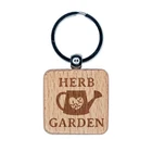Herb Garden Watering Can Engraved Wood Square Keychain Tag Charm