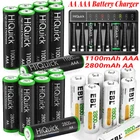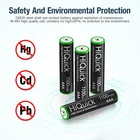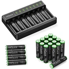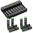 For AA AAA Battery Descriptions * This is 4 in 1 HiQuick AA AAA rechargeable NI-MH rechargeable battery, up to 1200 recharge times. Durable for high power demend devices such as Digital Cameras, CD Players, Remote Control Vehicles, Metal Detectors, Pocket Flashlights, PDAs Palm Pilots, Pagers, Game Boys, Children's Toys, etc Features * 100% Brand new and high quality * It is 4 in 1 HiQuick AA AAA rechargeable NI-MH replacement battery * The latest lock electric technology are adopted * Nimh environmental protection material * Rechargeable battery, up to 1000 recharge cycles * Excellent high discharge/drain performance * Exact replacement for standard AA AAA size batteries * Superior performance under low temperature condition * Longer in high drain devices than Alkaline batteries * Can be commonly usedd for for high power demend devices such as Digital Cameras, CD Players, Remote Control Vehicles, Metal Detectors, PocketFlashlights, PDAs Palm Pilots, Pagers, Game Boys, Children's Toys, etc Specification AAA Rechargeable Battery * Capacity: 1100mAh * Voltage: 1.2V * Battery type: AAA R03 * Chemical Composition: Ni-MH * Each 4 batteries come with 1 case box AA Rechargeable Battery * Capacity:2800mAh * Voltage: 1.2V * Battery type: AA R6 * Chemical Composition: Ni-MH * Each 4 batteries come with 1 case box For AA AAA Battery Charger Features [Quick Charger]HiQuick charger adopts Micro USB and TYPE-C dual input, and supports QC fast charging technology, which can adjust high current mode. [Practical and Multiple Slots Design]8 bays designed for Ni-MH/Ni-CD AA AAA rechargeable batteries, two channels of independent identification chip, can charge 1 to 8 batteries, depending on your choice. [LCD Pilot Lamp]Battery charger with smart LCD which is more convenient to understand the charging status, and check the defective battery detection results. [Intelligent USB Charging]Freely charge anytime, anywhere, suitable for all kinds of USB interface input voltage, convenient and fast. The 2 charging ports should not be used at the same time. [Unique Charging Mode]This charger adopts -DV control technology, constant voltage and constant current, effectively improve battery life and prevent accidental damage. Let you and your family use it safely. Specification Brand: HiQuick Compatible Devices: Aa aaa nimh nicad rechargeable batteries Item Dimensions LxWxH: 5.51 x 3.54 x 1.38 inches Item Weight :166.9 Grams Battery Cell Composition: NiMH Input: Micro USB/Type-C DC5V/2A Min Output: AA: DC 1.2V 1800mA; AAA: DC 1.2V 900mA Full-load Power: 10W Battery Charging Rate: ≥80% Charging Way: Constant voltage and current control Size: (127*79.5*26.7) ± 3mm Weight: 101g ± 5g (No batteries included) Package Included: According to your choice