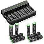 For AA AAA Battery Descriptions * This is 4 in 1 HiQuick AA AAA rechargeable NI-MH rechargeable battery, up to 1200 recharge times. Durable for high power demend devices such as Digital Cameras, CD Players, Remote Control Vehicles, Metal Detectors, Pocket Flashlights, PDAs Palm Pilots, Pagers, Game Boys, Children's Toys, etc Features * 100% Brand new and high quality * It is 4 in 1 HiQuick AA AAA rechargeable NI-MH replacement battery * The latest lock electric technology are adopted * Nimh environmental protection material * Rechargeable battery, up to 1000 recharge cycles * Excellent high discharge/drain performance * Exact replacement for standard AA AAA size batteries * Superior performance under low temperature condition * Longer in high drain devices than Alkaline batteries * Can be commonly usedd for for high power demend devices such as Digital Cameras, CD Players, Remote Control Vehicles, Metal Detectors, PocketFlashlights, PDAs Palm Pilots, Pagers, Game Boys, Children's Toys, etc Specification AAA Rechargeable Battery * Capacity: 1100mAh * Voltage: 1.2V * Battery type: AAA R03 * Chemical Composition: Ni-MH * Each 4 batteries come with 1 case box AA Rechargeable Battery * Capacity:2800mAh * Voltage: 1.2V * Battery type: AA R6 * Chemical Composition: Ni-MH * Each 4 batteries come with 1 case box For AA AAA Battery Charger Features [Quick Charger]HiQuick charger adopts Micro USB and TYPE-C dual input, and supports QC fast charging technology, which can adjust high current mode. [Practical and Multiple Slots Design]8 bays designed for Ni-MH/Ni-CD AA AAA rechargeable batteries, two channels of independent identification chip, can charge 1 to 8 batteries, depending on your choice. [LCD Pilot Lamp]Battery charger with smart LCD which is more convenient to understand the charging status, and check the defective battery detection results. [Intelligent USB Charging]Freely charge anytime, anywhere, suitable for all kinds of USB interface input voltage, convenient and fast. The 2 charging ports should not be used at the same time. [Unique Charging Mode]This charger adopts -DV control technology, constant voltage and constant current, effectively improve battery life and prevent accidental damage. Let you and your family use it safely. Specification Brand: HiQuick Compatible Devices: Aa aaa nimh nicad rechargeable batteries Item Dimensions LxWxH: 5.51 x 3.54 x 1.38 inches Item Weight :166.9 Grams Battery Cell Composition: NiMH Input: Micro USB/Type-C DC5V/2A Min Output: AA: DC 1.2V 1800mA; AAA: DC 1.2V 900mA Full-load Power: 10W Battery Charging Rate: ≥80% Charging Way: Constant voltage and current control Size: (127*79.5*26.7) ± 3mm Weight: 101g ± 5g (No batteries included) About Alkaline AA battery(Non-Rechargeable) Features Alkaline batteries provide a long-lasting power source Use in calculators, pencil sharpeners, cameras, flashlights and more Date-coded and 100% mercury-free Long-Lasting Performance in the widest range of devices 1.5 Volt No added mercury or cadmium Product Specification: Size: AA Model: LR6 Chemistry: Alkaline Capacity: AA 2700mAh Voltage: 1.5V Mercury, Cadmium: No Best for: remote control, camera flashlight, wireless mouse, radio and more Not come with one storage case box Package Included: According to your choice