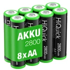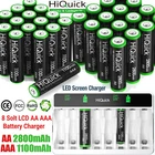 For AA/AAA Size Battery: Products Features: 100% Brand new and high quality It is 4 in 1 HiQuick AA/AAA rechargeable NI-MH 2800mAh/1100mAh replacement battery The latest lock electric technology are adopted Nimh environmental protection material Rechargeable battery, up to 1200 recharge cycles Excellent high discharge/drain performance Exact replacement for standard AAA/AA size batteries Superior performance under low temperature condition Longer in high drain devices than Alkaline batteries Can be commonly usedd for for high power demend devices such as Digital Cameras, CD Players, Remote Control Vehicles, Metal Detectors, PocketFlashlights, PDAs Palm Pilots, Pagers, Game Boys, Children's Toys, etc Products Specifications: Capacity: 2800 mAh/1100mAh Voltage: 1.2V Battery type: AA/AAA Chemical Composition: Ni-MH Total Weight: 130g/60g Quantity: 4/8/12/16/20pcs For 8 Slots Battery Charger : Feature: [Quick Charger]HiQuick charger adopts Micro USB and TYPE-C dual input, and supports QC fast charging technology, which can adjust high current mode. [Practical and Multiple Slots Design]8 bays designed for Ni-MH/Ni-CD AA AAA rechargeable batteries, two channels of independent identification chip, can charge 1 to 8 batteries, depending on your choice. [LCD Pilot Lamp]Battery charger with smart LCD which is more convenient to understand the charging status, and check the defective battery detection results. [Intelligent USB Charging]Freely charge anytime, anywhere, suitable for all kinds of USB interface input voltage, convenient and fast. The 2 charging ports should not be used at the same time. [Unique Charging Mode]This charger adopts -DV control technology, constant voltage and constant current, effectively improve battery life and prevent accidental damage. Let you and your family use it safely. Specification Brand: HiQuick Compatible Devices: Aa aaa nimh nicad rechargeable batteries Item Dimensions LxWxH: 5.51 x 3.54 x 1.38 inches Item Weight :166.9 Grams Battery Cell Composition: NiMH Input: Micro USB/Type-C DC5V/2A Min Output: AA: DC 1.2V 1800mA; AAA: DC 1.2V 900mA Full-load Power: 10W Battery Charging Rate: ≥80% Charging Way: Constant voltage and current control Weight: 101g ± 5g (No batteries included) Package Included: Choose your need On Nov 30, 2024 at 02:34:55 PST, seller added the following information: