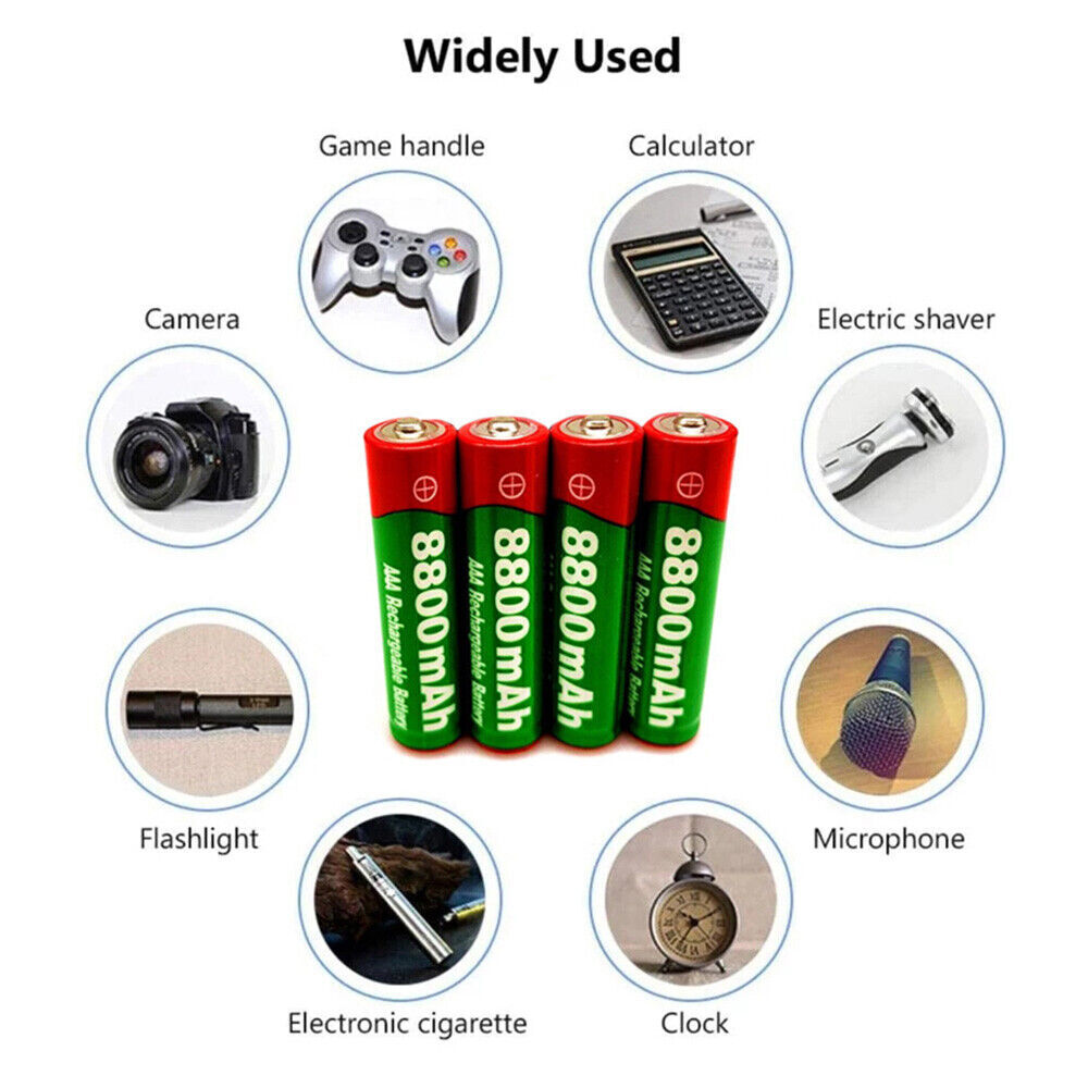 Features 1. Leak-proof technology, strong sealing, protection of electrical appliances. 2. High and low temperature resistance, stable voltage and current output. 3. Mercury-free, environmentally friendly, no harmful substances, safer to use. 4. This 9800mAh AA battery is a rechargeable battery. 5. The rechargeable battery has long service life and high efficiency. 6. Small and rechargeable, so you can carry it anywhere and anytime. 7. Suitable for keyless entry devices, garage door openers, car remote controls, remote keys, wireless doorbells, ceiling fans, GPS trackers, home alarm systems, ignition, LED torches, toys, home remote controls, computers, clocks, razors, etc. Specifications 1. Capacity: 9800mAh 2.Voltage: 1.5V 3. Battery type: AA, rechargeable battery 4. Up to 1000 charge cycles 5. Excellent high discharge performance 6. Precise replacement of standard AA batteries 7. Excellent performance in low temperature conditions 8.Size: 14*50mm/1.96in*0.55in 9. Colour: blue Package Included 16pcs Rechargeable AA Battery