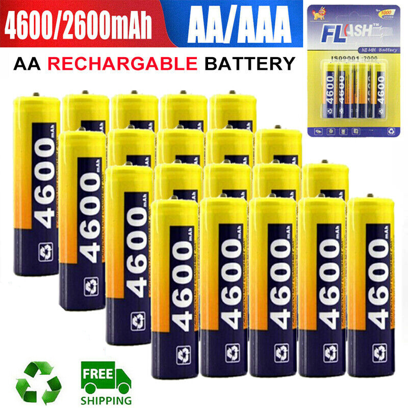 PRODUCT DETAILS: 100% Brand New and High Quality 2600mAH and 4600mAh 1.2V NI-MH High Energy Density. Contain's No Cadmium (Cd) &Mercury (Hg). Advanced Ni-MH technology means double the life per charge of ordinary rechargeable batteries. No memory effect, Environmental friendly. CE and RoHS Certifications . Fast Shipping from US! Replaces standard AA/ AAA size batteries. Can be rapidly charged with any quick charger, smart chargers, plug in charger or universal chargers. Common uses:Digital cameras, torches and LED lights, MP3 players, hand held games, toys and games. Note: 1.Do Not disassemble, dispose of in fire or short circuit. Must be recycled or disposed of properly. 2.Keep away from children. PRODUCT SPECIFICATIONS: Capacity: AAA 2600mAh/AA 4600mAh Voltage: 1.2V Chemistry: Ni-MH (Nickel Metal Hydride) Rechargeable Times: Up to 1000 times PACKAGE INCLUDED: 4/8/12/16/20pcs AA/AAA Ni-MH Rechargeable Batteries On Nov 28, 2024 at 20:45:10 PST, seller added the following information: