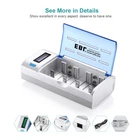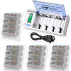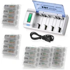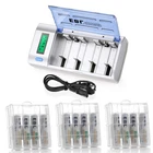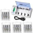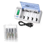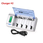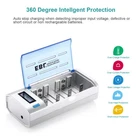 Please note that the package included is according to what you choose. For AAA AA battery Features : * 100% Brand new and high quality * It is 4 in 1 EBL AA AAA rechargeable NI-MH replacement battery * The latest lock electric technology are adopted * Nimh environmental protection material * Rechargeable battery, up to 1000 recharge cycles * Excellent high discharge/drain performance * Exact replacement for standard AA AAA size batteries * Superior performance under low temperature condition * Longer in high drain devices than Alkaline batteries * Can be commonly usedd for for high power demend devices such as Digital Cameras, CD Players, Remote Control Vehicles, Metal Detectors, PocketFlashlights, PDAs Palm Pilots, Pagers, Game Boys, Children's Toys, etc Specification : Battery type: Ni-MH Battery size: AA R6 / AAA R03 Battery voltage: 1.2V Battery rated capacity: 2300mAh / 800mah Recycle times: 1200 times (Each four batteries come with one case box) For Charger #2 Features : 1. 100% New Brand and High Quality. 2. Short circuit protection, to prevent electrical short circuits from charging. 3. This universal charger can charge for 1-4pcs AA/AAA/C/D and 1 or 2pcs 9V Ni-MH/Ni-CD rechargeable batteries. 4. This charger is for using indoor only,keep it away from miost and heat. 5. Easy to use, it has LCD screen for AA/AAA/C/D battery and LED indicator for 9V battery to show the status of charging. 6. Automatic recognition function: unique algorithm to detect bad or defective cells, automatically detect non-chargeable or disposable battery and cease charging. Specifications: 1. Input: 100-240V AC, 50/60Hz 10W, 12V DC 800mA 2. Output: AA/AAA/C/D 1.2V DCx4 1000mA, 6F22 9V DC 30mA 3. No Load Power Consumtion: 0.5W Max 4. Full Load power consumtion: 10W Max 5. Battery Chrge Rate: >96% 6. Size: 195mm x 93mm x 53mm 7. Weight: 320 g 8.What's inside: 1x EBL Universal LCD Smart Battery Charger 1x Charge Cable 1x User Manual Battery Type (Ni-MH) Capacity Charging time (approx.) AAA 500-1200mAh 1 - 3 hours AA 1300-2800mAh 1 - 3 hours C 1800-5000mAh 1 - 5 hours D 1800-10000mAh 1 - 8 hours 9V 150-600mAh 5-20 hours Compatible with: AA/AAA/C/D Ni-MH/Ni-Cd rechargeable battery 9V Ni-MH/Ni-Cd rechargeable battery Package Included: According to what you choose