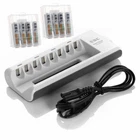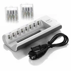 SUPER HIGH QUALITY AAA or AA NI-MH Rechargeable Batteries With or Without Charger (your choice) Product Description: When your rechargeable batteries are out of power, you need a battery charger, and this battery charger is a very good choice for you,It can charge 2/4/6/8 pcs of AA/AAA NI-MH/NI-CD rechargeable battery.What's more ,This charger uses the MCU control technology, providing the constant current and constant voltage safety model. Product Features: For the charger: 1.Brand new and high quality 2.Worldwide Voltage,suitable for the whole world. 3.Constant charging current and voltage keep the battery longer using life. 4.4 LEDs show the charging process,the LEDs display RED when put batteries into the charger;the LED light become weaker and weaker along with the charging process ;automatically switches to trickle charge when charging is complete to ensure maximum battery capacity. 5.The Charger can charge for NI-MH/NI-CD AA/AAA battery,never charge 1 AA + 1 AAA together at 2 slots which are controlled by 1 LED. For the battery:(AAA) 1.Adopt the latest lock electric technology 2.Nimh environmental protection material 3.Up to 1000 recharge cycles 4.Superior performance under low temperature condition 5.Longer in high drain devices than Alkaline batteries. 6.It is for Portable tape and TV remote controls,Clocks and radios,Electronic games,Smoke alarms,PDA's,Flashlights,DVD, MP3, and digital camera,Cordless phone, electrical toy, and more. Product Specifications: For the charger: 1.input:AC 100-240V AC 50/60Hz 2.Output:2.8V DC 800mA 3.200mA(AA*2,AA*4,AA*6,AA*8) 4.180mA(AA*2,AA*4,AA*6,AA*8) 5.No Load Power Consumtion:1W MAX 6.Full Load power consumtion:5W MAX 7.Battery Chrge Rate:>80% 8.Size:180mm x 77mm x 28mm For the battery: 1.Capacity:800mAh / 1100mAh for AAA ----- 2300mAH / 2800mAh for AA 2.voltage: 1.2V 3.battery type: AAA or AA 4.Rechargeable type: Ni-MH