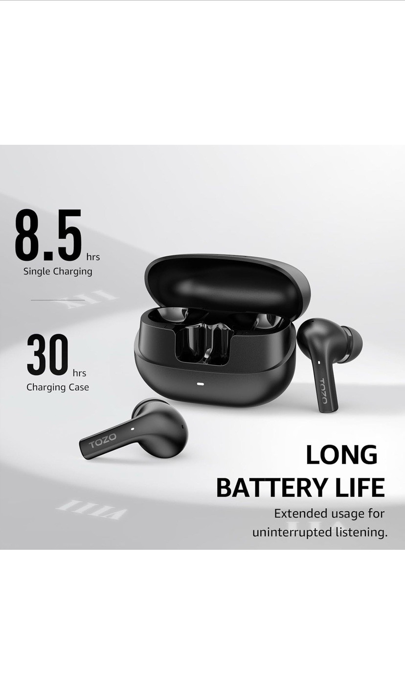 TOZO E2 Wireless Earbuds with 2 Mics AI Call Noise Cancellation, 10mm Drivers with Powerful Bass, App Customize 32 EQs, 30H Playtime, Bluetooth 5.3 Ear Buds, Comfort Fit in-Ear Headphones