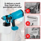 Features: 【HVLP Tech】 This sprayer ejects higher-volume airflow with lower pressure, finely atomizing the paint and significantly reducing over-spray, dripping, and paint waste. 【3 Spray Patterns】 The paint sprayer can be adjusted to 3 different spray patterns: horizontal, vertical, and round. 【Cordless & Effortless】 The paint sprayer paints a wall 8 times faster than a brush, saving time and labor. 【Easy to Use & Clean】 Whether you're a beginner or a professional, you can disassemble and clean this cordless paint gun in a few minutes. Specification: Type: HVLP Paint Sprayer Material: Nylon + Powder Metallurgy + Plastic Power Supply: Rechargeable 21V Lithium Battery Battery Capacity: 2000mAh Nozzle Caliber: 1.8mm / 0.07in Power: 600W Frequency: 50/60Hz Pot Capacity: 800ml 2 Batteries High Pressure Cordless Paint Sprayer Electric Airless HVLP Spray Gun Featu res: 【HVLP Tech】 This sprayer ejects higher-volume airflow with lower pressure, finely atomizing the paint and significantly reducing over-spray, dripping, and paint waste. It delivers a much finer finish than a paintbrush and roller, and it is highly suitable for home, garden & DIY projects on cars, doors, decks, fences, ceilings, furniture, wall siding, and artwork. 【3 Spray Patterns】 The paint sprayer can be adjusted to 3 different spray patterns: horizontal, vertical, and round. It comes with a 1.8mm nozzle, which only requires a simple switching to change the spray pattern according to your needs. 【Lightweight Design】 Our cordless sprayer gun is designed to be lightweight and easy to use, and you will not feel tired even if you use it for a long time. Its compact size also makes it easy to store and carry. 【Easy to Use & Clean】 Whether you're a beginner or a professional, you can disassemble and clean this cordless paint gun in a few minutes. It is ideal for various of painting application, including interior and exterior walls, ceilings, furniture for oil-based paints, being a good helper while working. 【Cordless & Effortless】 The paint sprayer paints a wall 8 times faster than a brush, saving time and labor. Large area such as walls, ceilings, exterior siding and fences that need to be sprayed can also be easily tackled. No worry about the cord being too short to use outside because the cordless paint sprayer allows you to get rid of the interference of wires so that you can work freely and effectively. Specification: Type: HVLP Paint Sprayer Material: Nylon + Powder Metallurgy + Plastic Power Supply: Rechargeable 21V Lithium Battery Pot Capacity: 800ml Rated Speed: 30000rpm Air Flow: 160L/Min Paint Flow: 100-200ml/min Battery Quantity: 2 Charger Quantity: 1 Battery Capacity: 2000mAh Nozzle Caliber: 1.8mm / 0.07in Power: 600W Frequency: 50/60Hz Optimal Spraying Distance: 15-30cm / 5.9-11.81inch Max. Viscosity: 80 DIN-Secs Size: 30cm x 26cm x 12cm / 11.81" x 10.24" x 4.72" (Approx.) Package Contents: 1*Paint Sprayer 2*Battery 1*Charger 1*Sprayer Cup 1*User Manual Payment Shipping Return Contact us About us Payment 1.Paypal, Credit Card, G Pay etc, many payment way is accepted. 2.Please be sure your shipping address is correct before make a payment. Shipping 1.We are shipping from multiple warehouses (Houston, Texas/ Corona, California) , please note before placing an order 2.We will ship out the item within 1-3 business days after comfirming the payment, appreciate your patience. 3.If the items are broken on the way( we will check the orders clearly before we sent them ),please contact us in 3 days you received it. We will send you a new one or refund your payment. Return 1.We stand behind every buyer.Items can be returned for exchange or refund within 30 days. 2.Please contact us when you have any confusion of our item, we will solve the trouble for you as soon as possible. Contact us 1.This is professional Seller.We will reply your message within 24 hours. 2.Please contact us whenever you have any question about the item. We will deal with it as soon as possible. 3. If you are unhappy with the item or our service,please Contact Us before leave feedback,just give me a chance,thank you! About us 1. Unless specified otherwise, all our products are IN STOCK and are shipped from Local warehouse - Not Overseas! 2. We provide a 30 day Satisfaction Guarantee or your money back (provided items are in the same new and resaleable condition.) 3. We have a PayPal Verified Business Account, please buy with Confidence! 4. Every item will be tesrted before send.We know our products well and if we don't have the answers we will do our best to find them for you! 5. Our friendly team look forward to serving you! Your satisfaction is our No.1 Priority We will do our best to satisfacy you. Frame Configuration Handheld , Portable , Cordless , One-Hand Power Source Battery Items Included Paint Sprayer, 2*Battery, 1*Charger, Sprayer Cup Color Blue Suitable For Commercial, Decking, Door, Exterior, Fencing, Floor & Ceiling, Furniture & Cabinet, Interior, Residential, Wall, Woodworking Projects Pump Type Diaphragm Pump Brand Unbranded Type HVLP Paint Sprayer Trigger Configuration 1-Finger Hose Length 32cm / 12.6inch Model Paint Sprayer Features Adjustable Pattern Control, Material Flow Control, Waterproof, 3 Paiting Patterns Compatible Material Nylon + Powder Metallurgy + Plastic Power 600 W Container Capacity 800ML Paint Spraying Volume 100-200ML/MIN MPN Does not apply Manufacturer Warranty 1 Year