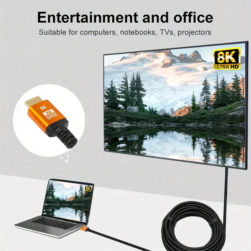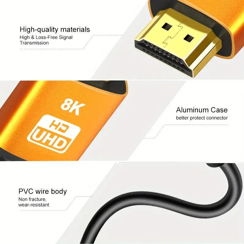 This HDMI cable delivers stunning 8K clarity and vibrant colors—perfect for gaming, movies, or streaming. The durable aluminum build ensures fast, lag-free 4K@60Hz performance, and it works flawlessly with TVs, monitors, and consoles. A must-have for anyone serious about top-tier picture quality!
