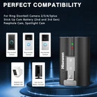 【Full Compatibility】The Replacement Battery is designed to be a high-quality power source for Ring-Video Doorbell 2/3/3Plus/4, Ring stick up camera battery (2nd and 3rd Gen), Ring spotlight camera battery, Smart Lighting Solar Floodlight, and Door View Cam. 【Powerful Battery】2 Pack 3.65V Rechargeable Lithium-ion Batteries, Capacity: 6040mAh. Premium Grade A cells for longer battery lifespan with no memory effect. The battery needs to be charged before first use. 【LED Display & Easy Charging】Smart LED indicator shows Ring battery power; Comes with a charger station that can meet multiple charging methods, and includes a UL-certified Power Adapter for efficient and safe charging. 【Multiple Protection】Built-in over-current, over-charge, over-voltage, over-heating, and short-circuit protections, ensure both battery and charger safety. 【What You Get】2 Packs 6040mAh Rechargeable Batteries, 1 x Charger Station, 1 x Power Adapter, 1 x Type-C Cable. 30-day refund, 12-month warranty, and technical support.