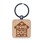 Home Is Where the Dog Is Engraved Wood Square Keychain Tag Charm