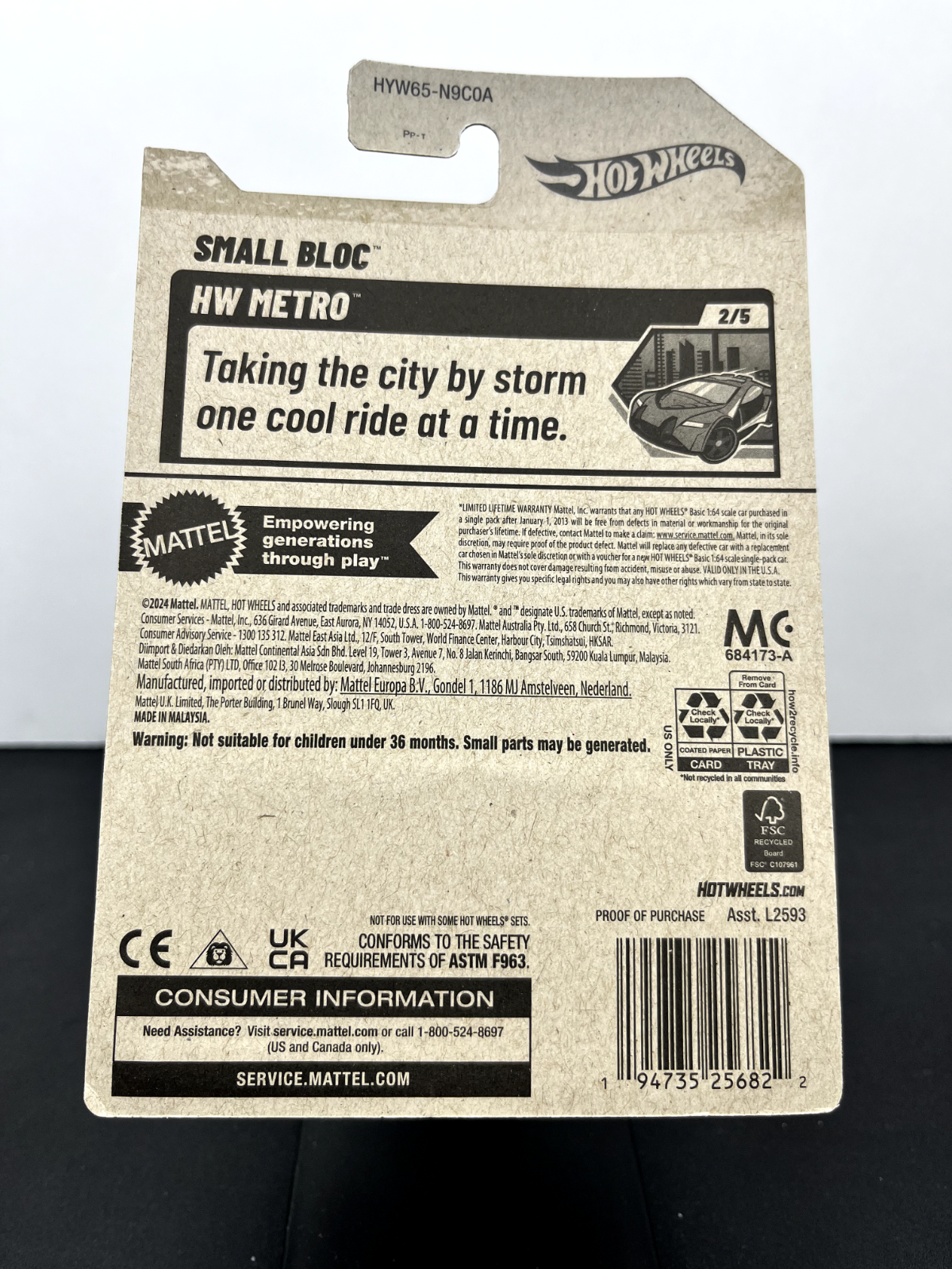 Hot Wheels 2025 Mainline A Case HW Metro Small Bloc Taxi Hot Wheels Let's Race is a must-have for any diecast and toy vehicle collector. The car is part of the Hot Wheels Metro series and is a 1:64 scale model. Perfect for collectors or anyone who loves cars and wants to have a unique and rare addition to their collection. The car has been stored in a smoke-free and pet-free environment, and it is in excellent condition. The car comes with the original packaging and instructions, making it easy to display and keep safe. Overall, this Hot Wheels 2025 Mainline A Case HW Metro Small Bloc Taxi Hot Wheels Let's Race is a great investment and a perfect addition to any collection. All items are shipped and sold from the USA. Will ship in a corrugated box with bubble wrap ***NO BUBBLE MAILERS***
