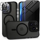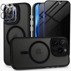 Huffii Magnetic for iPhone 15 Pro Max Case [for MagSafe] [2X Camera Lens +2X Privacy Screen Protector] Translucent Matte Slim Protective Phone Case for iPhone 15 Promax Case| Black Titanium