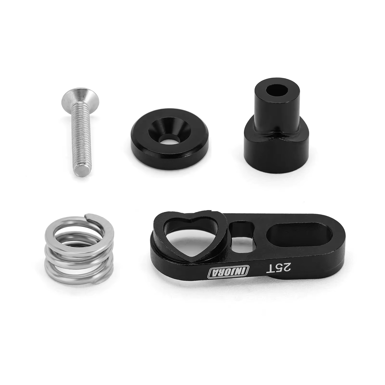 Features: CNC machined and black anodized High precision and fine workmanship Segmented spring structure design reduces the strain on the components and promotes longevity of servo Servo Arm Specifications: Material: Aluminum Color: Black Weight: 4g (0.14oz) Suit For: SCX10 PRO INJS2065 Servo Specifications: Dead band: 2μs Neutral Position: 1500μs/330hz Motor: Core Motor Remote Control Angle: 90-120°±2° 500-2500μs Angle: 180°±2° Voltage Range: 4.8V-8.4V Operating Speed(6.0V): 0.09''/60° Operating Speed(8.4V): 0.06''/60° Stall Torque(6.0V): 6.0 kg.cm/83.3oz.in Stall Torque(8.4V): 7.0 kg.cm/97.2oz.in Dimensions: 23*13*25.8mm Weight: 20g Connector Wire Length: JR 300 mm Bearing: 1BB Packing Weight: 28g Package size: 36X23X38mm