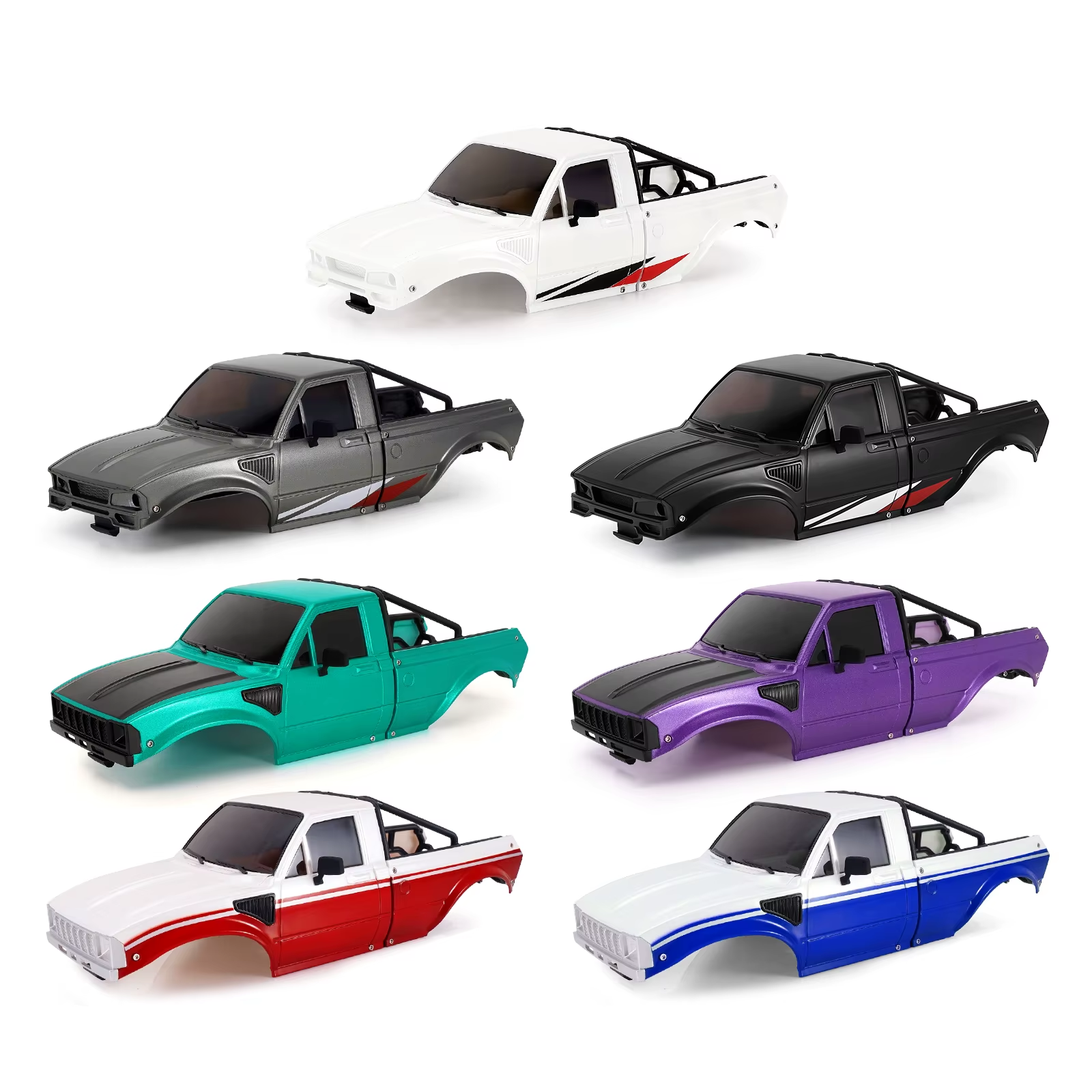Only compatible with stock TRX4M Defender Bronco rails and INJORA Universal TRX4M chassis Features: ABS pickup hard body with rear bed rack. Come with two styles of front grille. Rubber rearview mirrors for better durability. Four screws, endless possibilities. Attach the body shell to the chassis with just a twist. Easy as that! Front Clipless Mounting design and Rear hook-and-loop hinge design. Its hook-and-loop hinge design lets you reach the chassis and battery quickly by simply swinging the body up. Suit for your TRX4M Bronco and Defender chassis and you're ready for fun and adventure! Specifications: Part Number: IR60 Material: ABS Plastic Color: Pearl White, Black, Grey, Green, Purple Weight: 78g (0.172lb) Wheelbase: 155mm (6.10in) Size: 225*90*67mm (8.86*3.54*2.64in) Package List: 1* IR60 Body Kit 1* Front & Rear Led Light 1* Body Assembly Manual