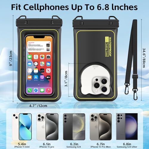 Return Policy Fast Delivery Trusted seller Waterproof Phone Pouch - IP68 Floating Waterproof Phone Case [Beach Cruise Essentials], Cellphone Dry Bag for 15/14/13/12/11 Pro Max Plus Up to 6.8'' Black Product Description 【IP68 WATERPROOF CERTIFIED】--The waterproof phone pouch is made of eco-friendly PVC with an excellent water-resistant design up to about 100 feet (30 meters), providing full waterproof/snowproof/dustproof/sandproof protection for your cell phone. 【FLOATING DESIGN】--Waterproof phone bag features an internal sponge filling design, allowing it to float, you can enjoy your water activities without the fear of losing your phone or valuables after it falls into the water.Universal waterproof phone case can suitable for phone up to 6.8'', such as iPhone 15/14/13/12/11 Pro Max X XR Xs 8 7 6 Plus. 【HOOKS & ADJUSTABLE LANYARD & SECURE LOCK DESIGN】--2-hooks design breaks down weight pressure for increased comfort and the lanyard extends the strap for use as a crossbody or shoulder bag. Secure locking mechanism opens and closes our floating waterproof dry bag with a simple push of a button, keeping the bag fully sealed underwater. 【HD DESIGN & SENSITIVE TOUCH】--Sensitive touch screen made of high-quality PVC material with transparent window design on the front for a delicate touch and quick response, easy to take photos, answer phone calls, send messages, watch videos, check emails and face recognition, etc. Waterproof mobile phone pouch provides clear photo capturing of the underwater world. 【MULTI-TYPE APPLICATION】--Perfect for swimming pools, beach playing, water park, kayaking, snorkeling, surfing, sailing, skiing, boating, snorkeling, tubing, rafting, showering, other water park activities and to store your ID; [Note]: Please test the waterproof function with paper towel before each use. Shipping Returns Payment Shipping Shipping is FREE to all addresses other than APO/PO boxes in the lower 48 states. All our stock ships from US-based warehouses. Shipped via USPS or UPS (depending on location and package weight) Unless stated otherwise, all orders will ship within 24-72 hours of your payment being processed. Check our feedback to see the great reviews of FAST shipping we offer. Returns Seller does not accept returns Payment We currently accept payment via eBay managed payments only. Once payment is cleared, we will dispatch your shipment within 1-3 business days. Please refer to the "Shipping" tab for more information regarding shipping speed to your destination.