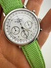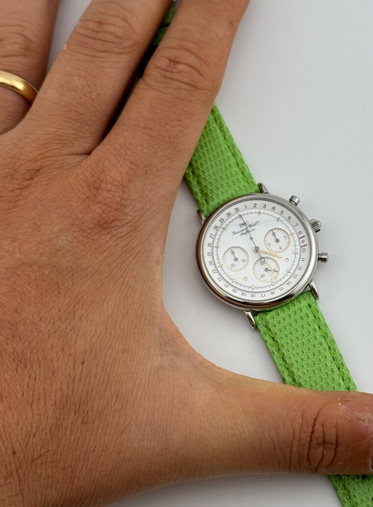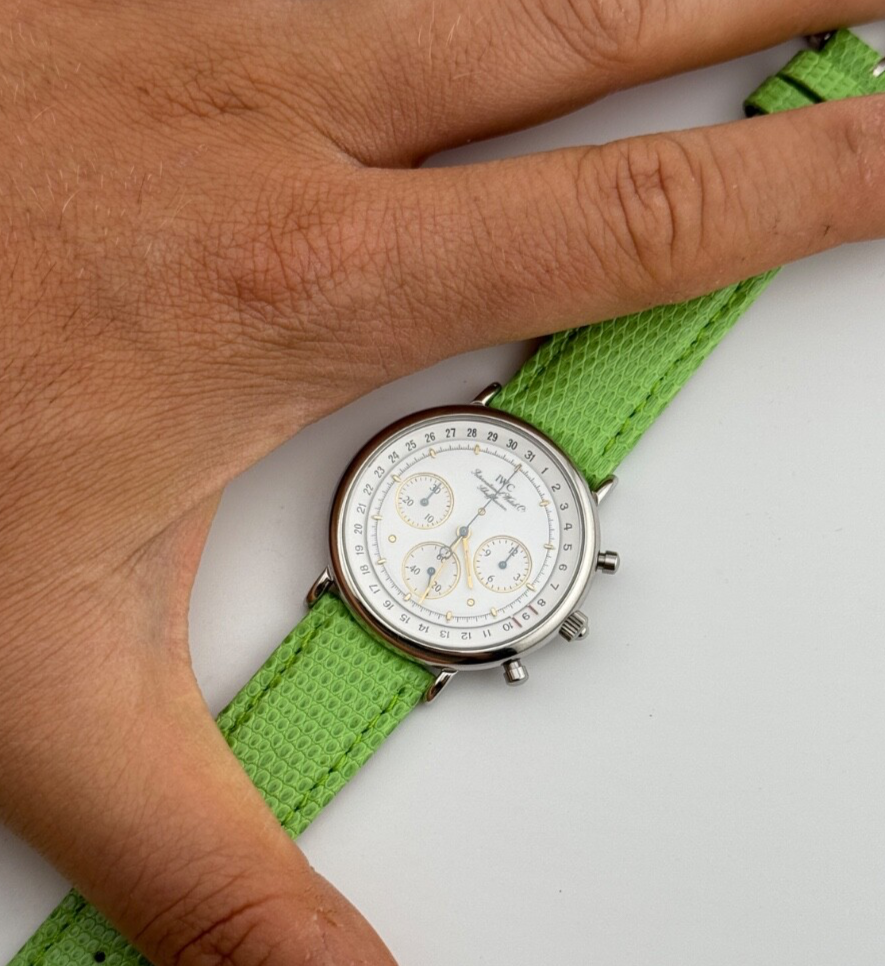 Absolutely stunning timepiece! The 35mm steel case wears perfectly, and that original lizard strap in light green is such a unique touch. Everything is authentic IWC, keeping perfect time after service. A true classic with modern appeal!