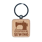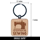 I'd Rather Be Sewing Engraved Wood Square Keychain Tag Charm