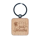 Inspirational Dandelion Just Breathe Engraved Wood Square Keychain Tag Charm